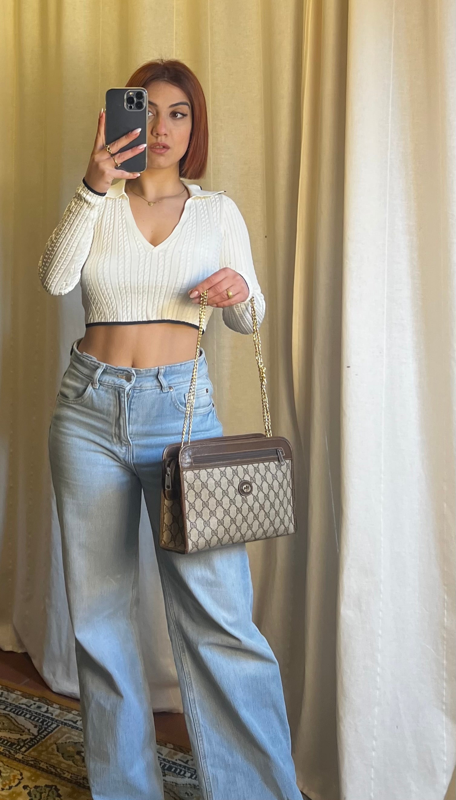 • Materiale: Tela monogram GG e finiture in pelle marrone.