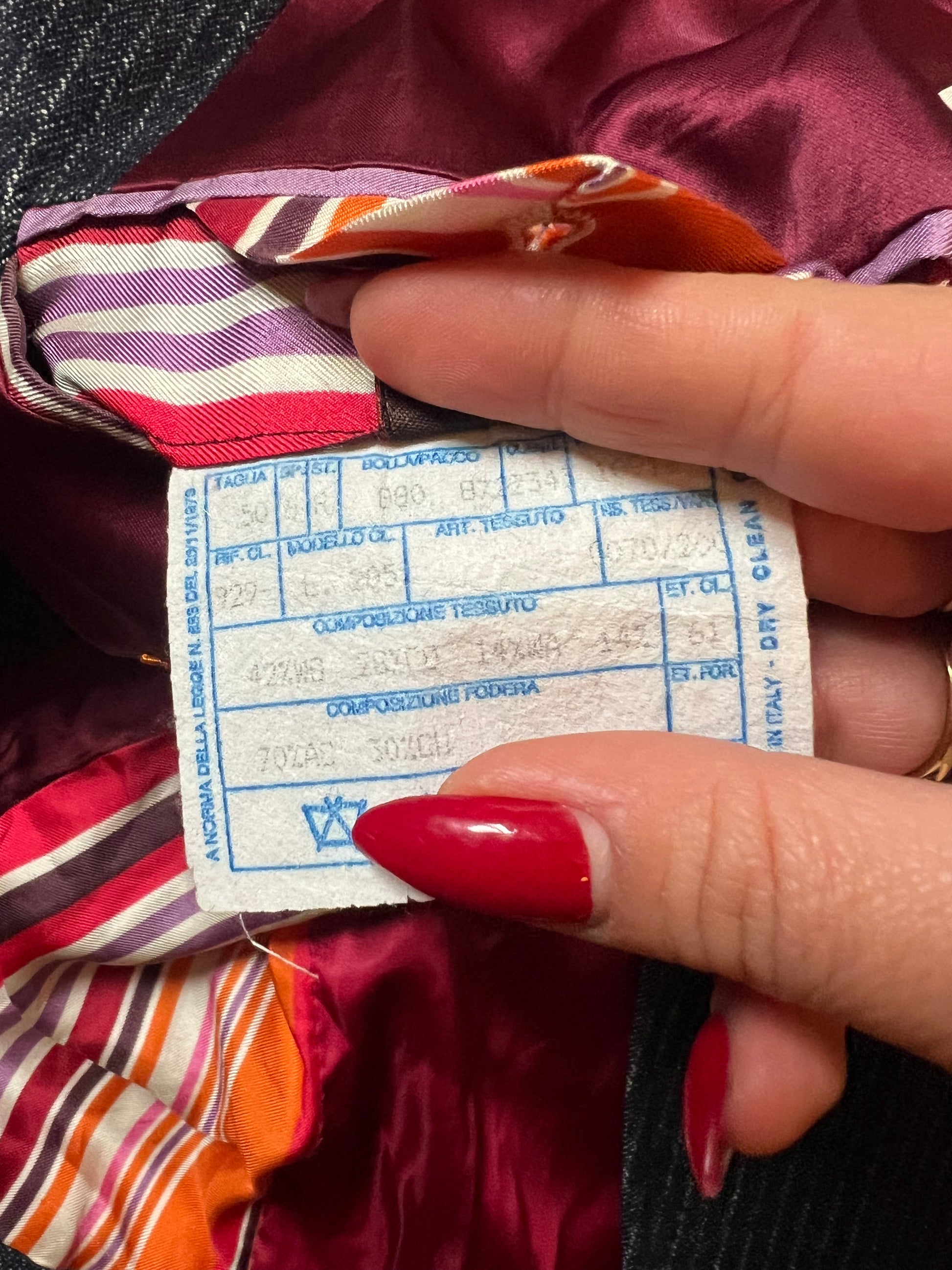 L’interno è impreziosito da una fodera multicolor iconica, mentre il logo Etro è presente sia dietro il colletto che all’interno.