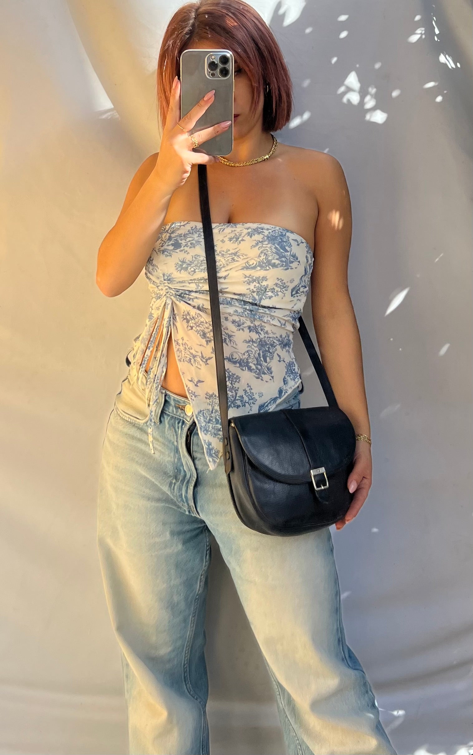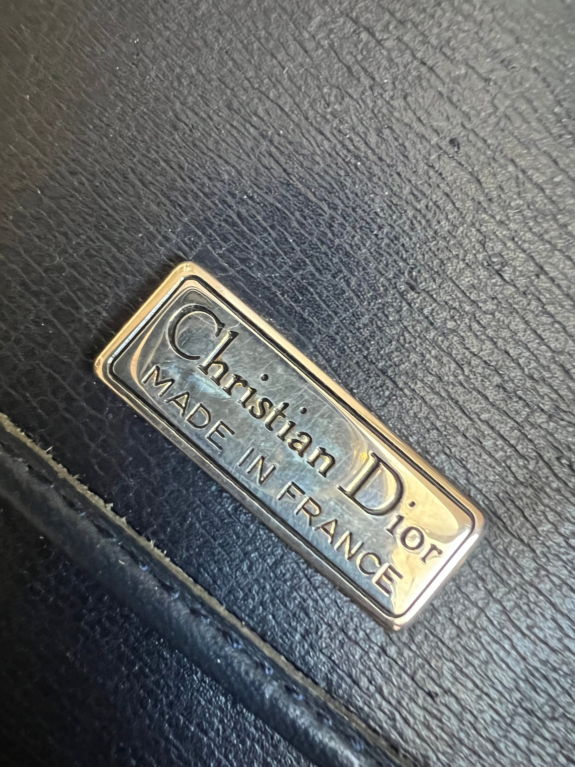 Elegante borsa Dior modello Postina, realizzata in pelle martellata blu scura, dal fascino intramontabile e dal design compatto.