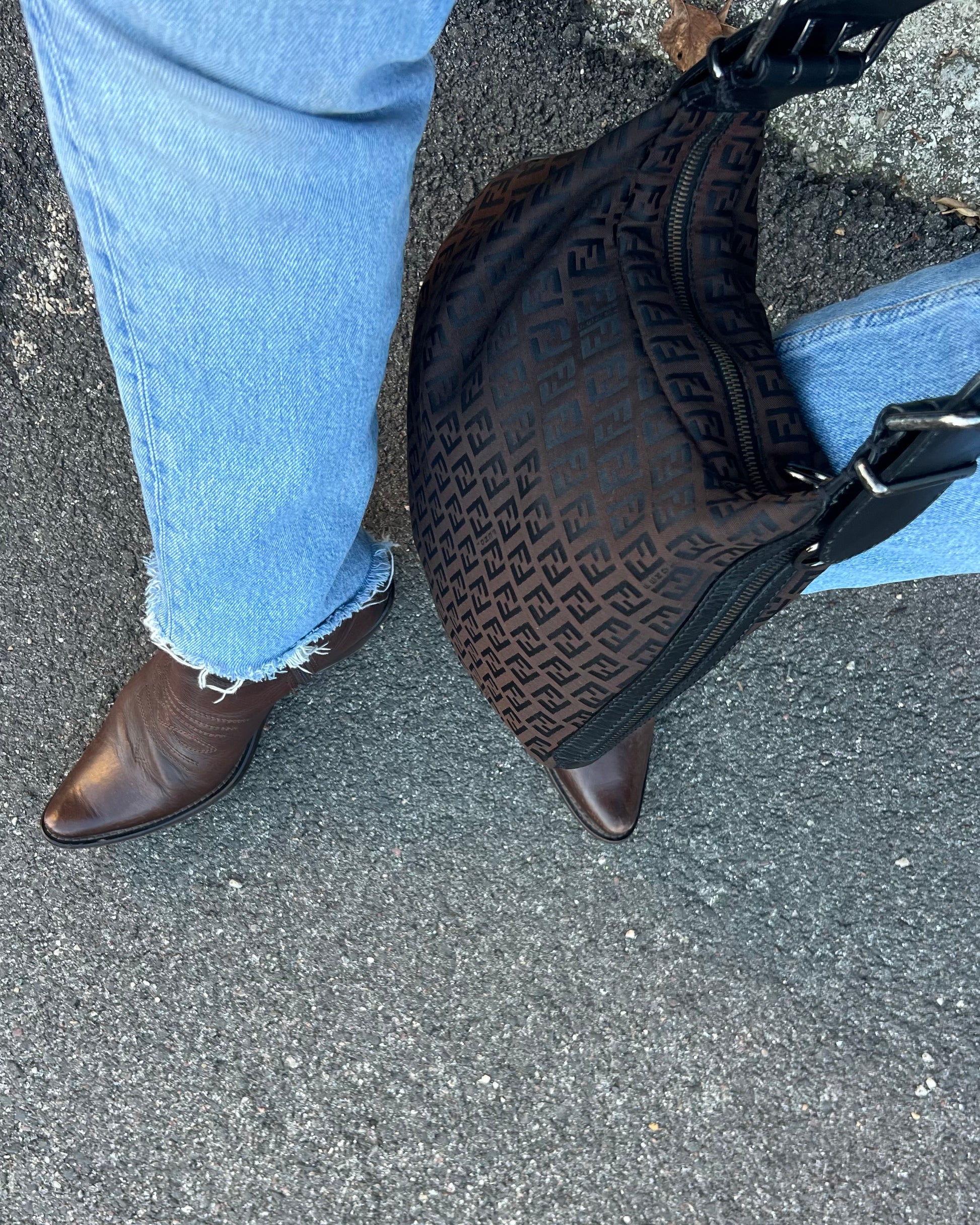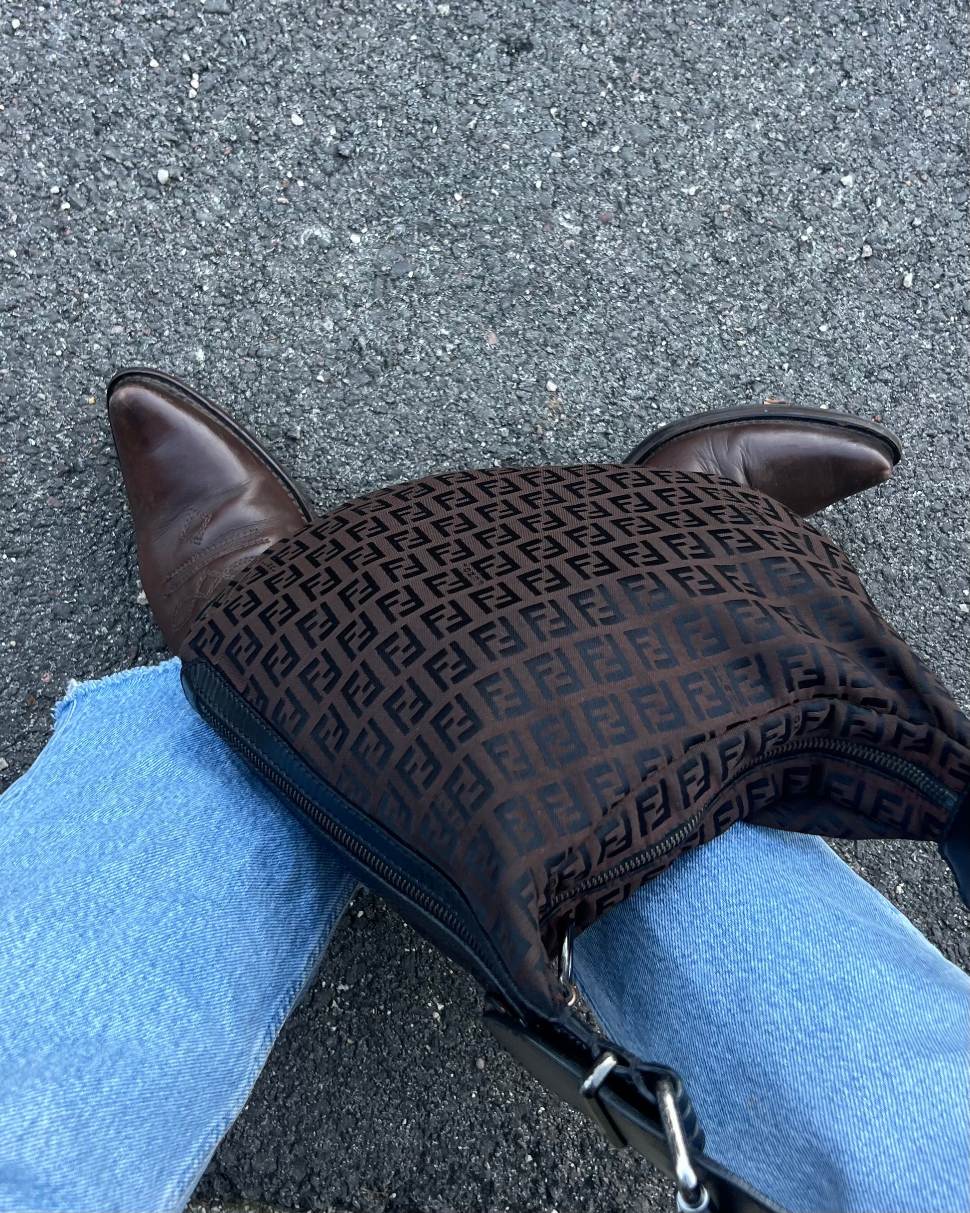 Iconica e senza tempo, questa borsa Fendi modello Oyster è realizzata in pregiato tessuto Zucchino nell’elegante tonalità marrone scuro. La texture riconoscibile del monogramma Fendi si combina armoniosamente con i dettagli in pelle nera, che aggiungono struttura e raffinatezza al design. Dotata di chiusura sicura e finiture metalliche originali, offre un interno capiente e ben organizzato, ideale per l’uso quotidiano. Un accessorio versatile e sofisticato, perfetto per valorizzare ogni look con un tocco di lusso italiano.