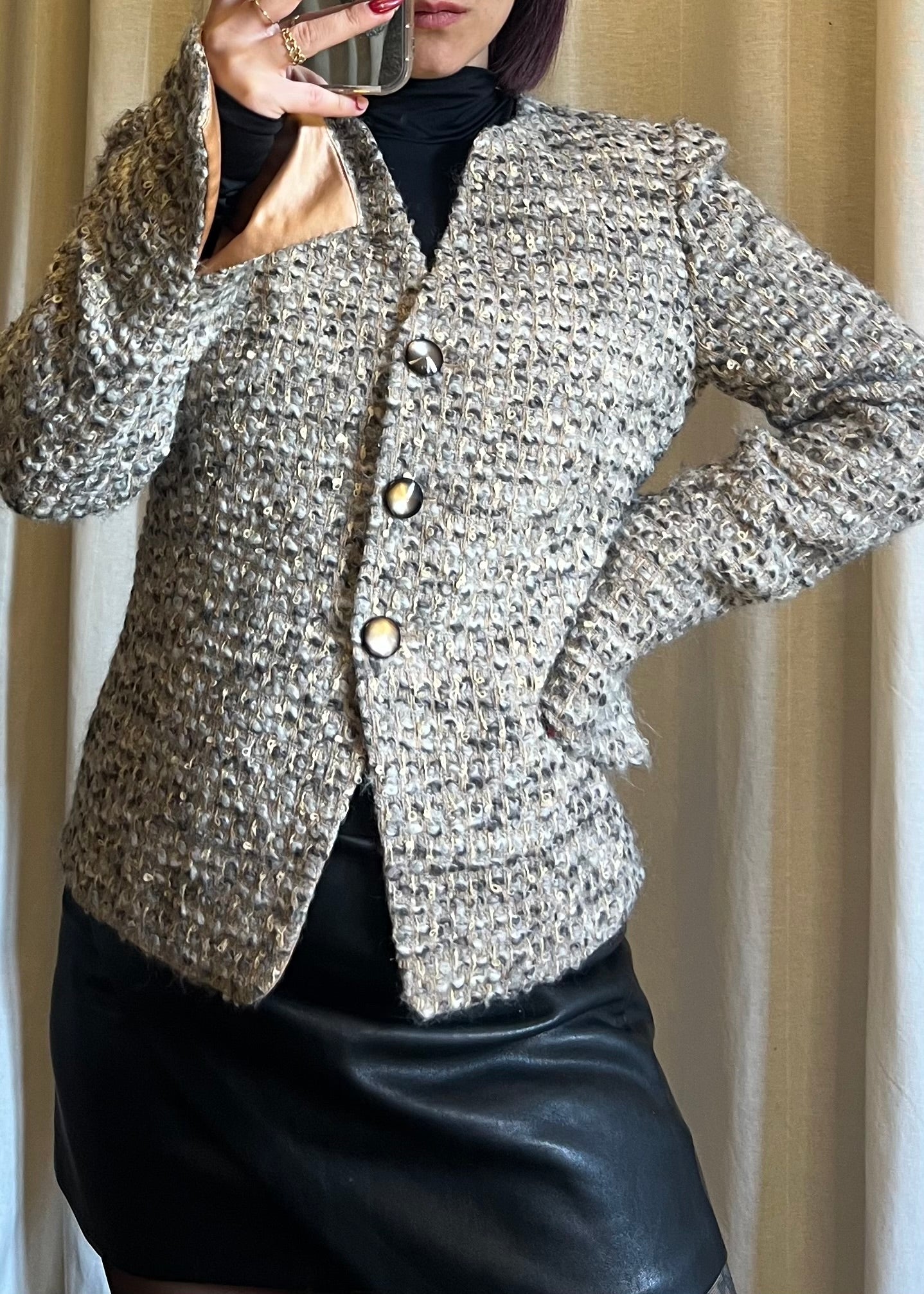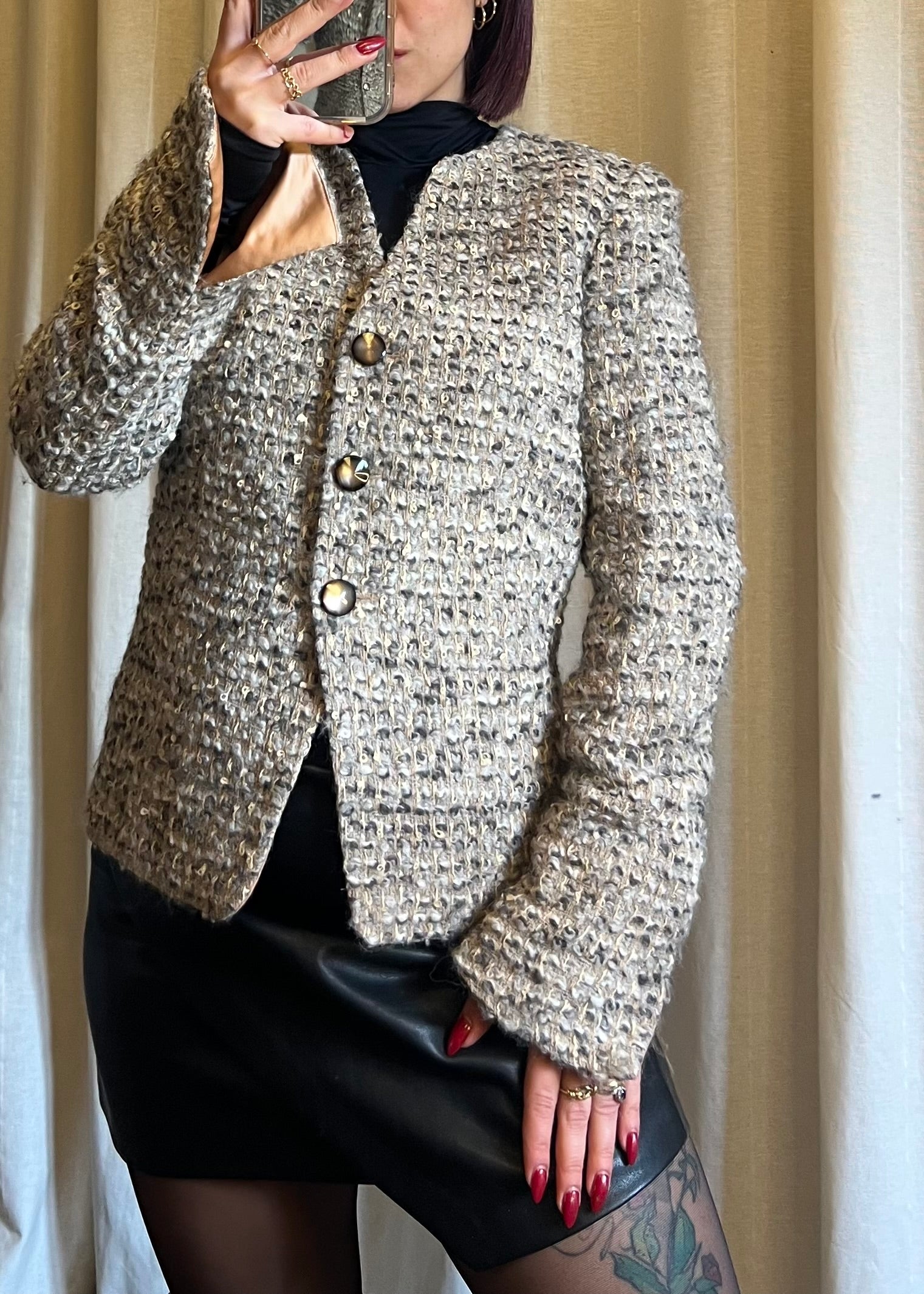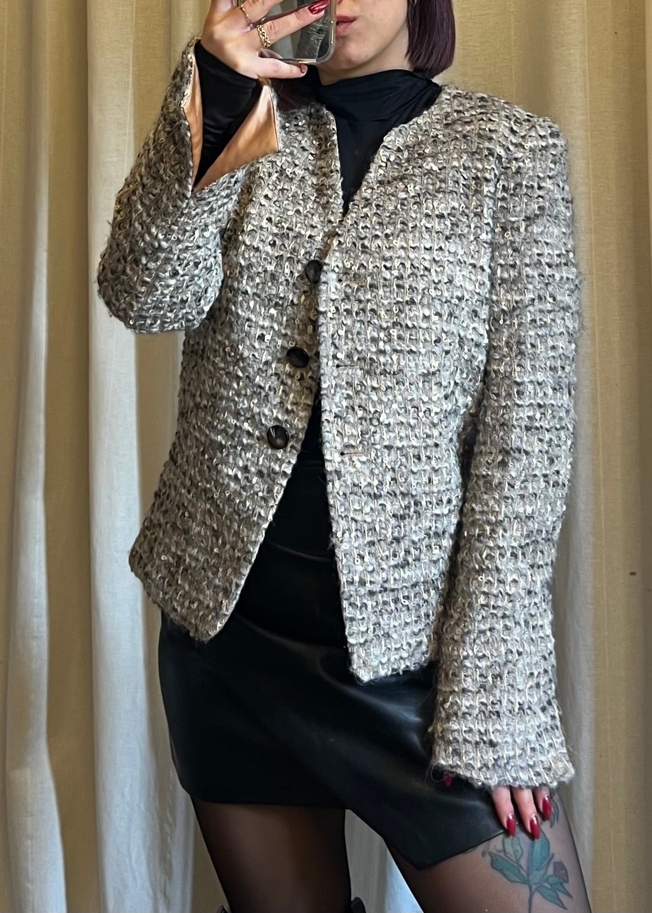 Giacca Armani Collezioni in lana con fodera interna, un capo sofisticato e senza tempo, espressione della prima linea del brand. In foto è indossata da una taglia S; la vestibilità è consigliata fino a una taglia 42, offrendo comfort e linee armoniose. Morbida, raffinata e versatile, è perfetta per completare look eleganti e contemporanei, incarnando lo stile distintivo e l’artigianalità della Maison Armani.