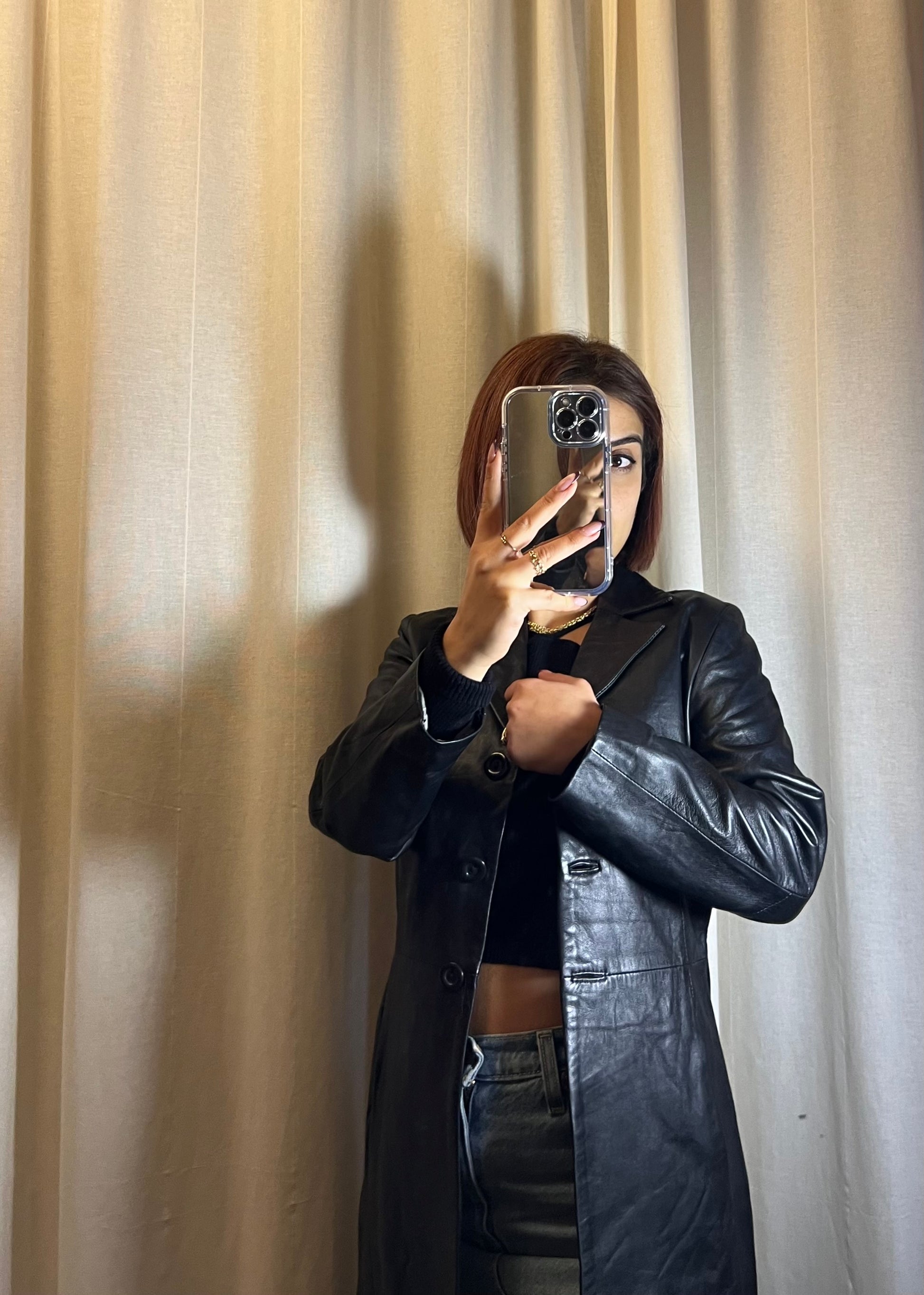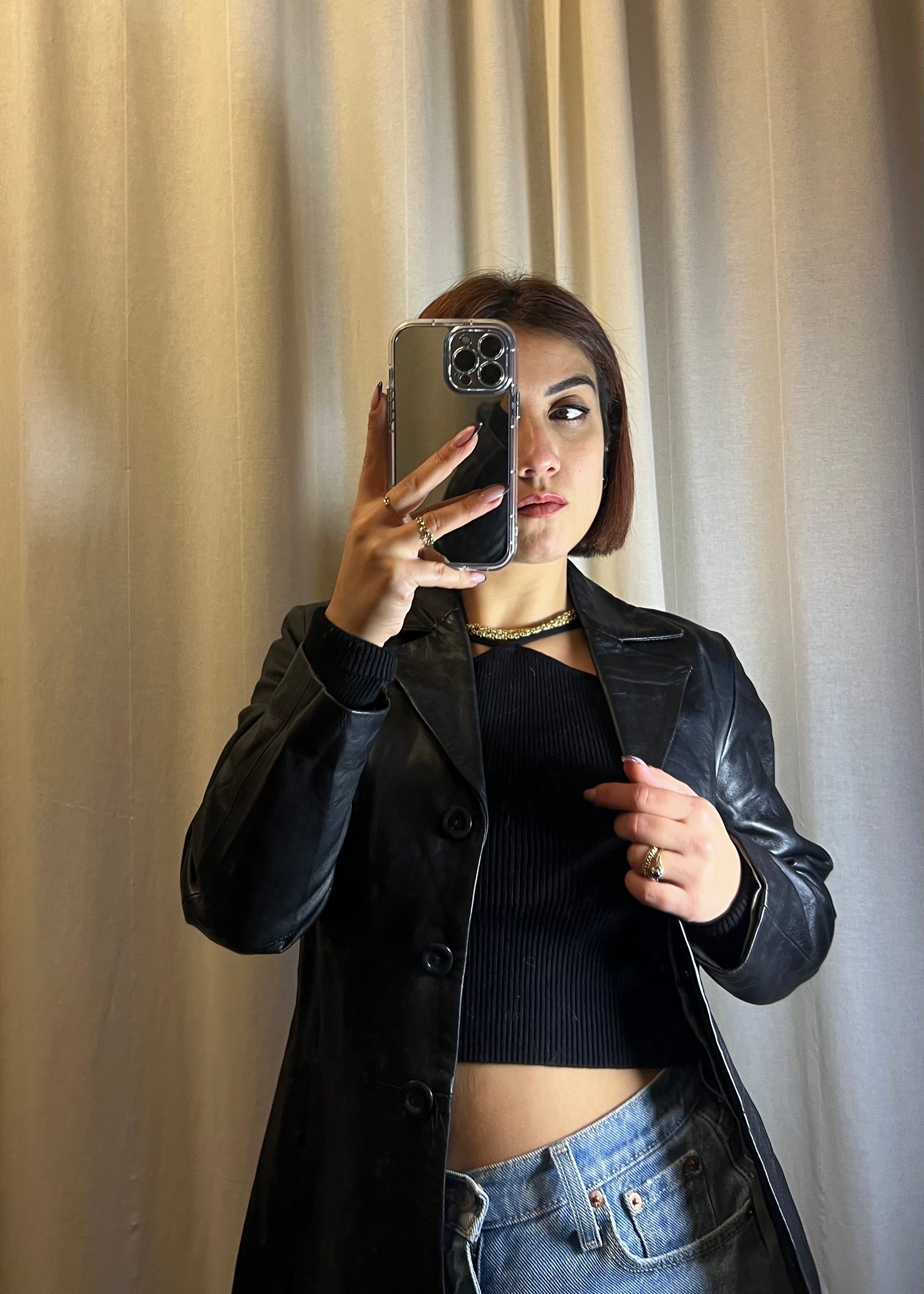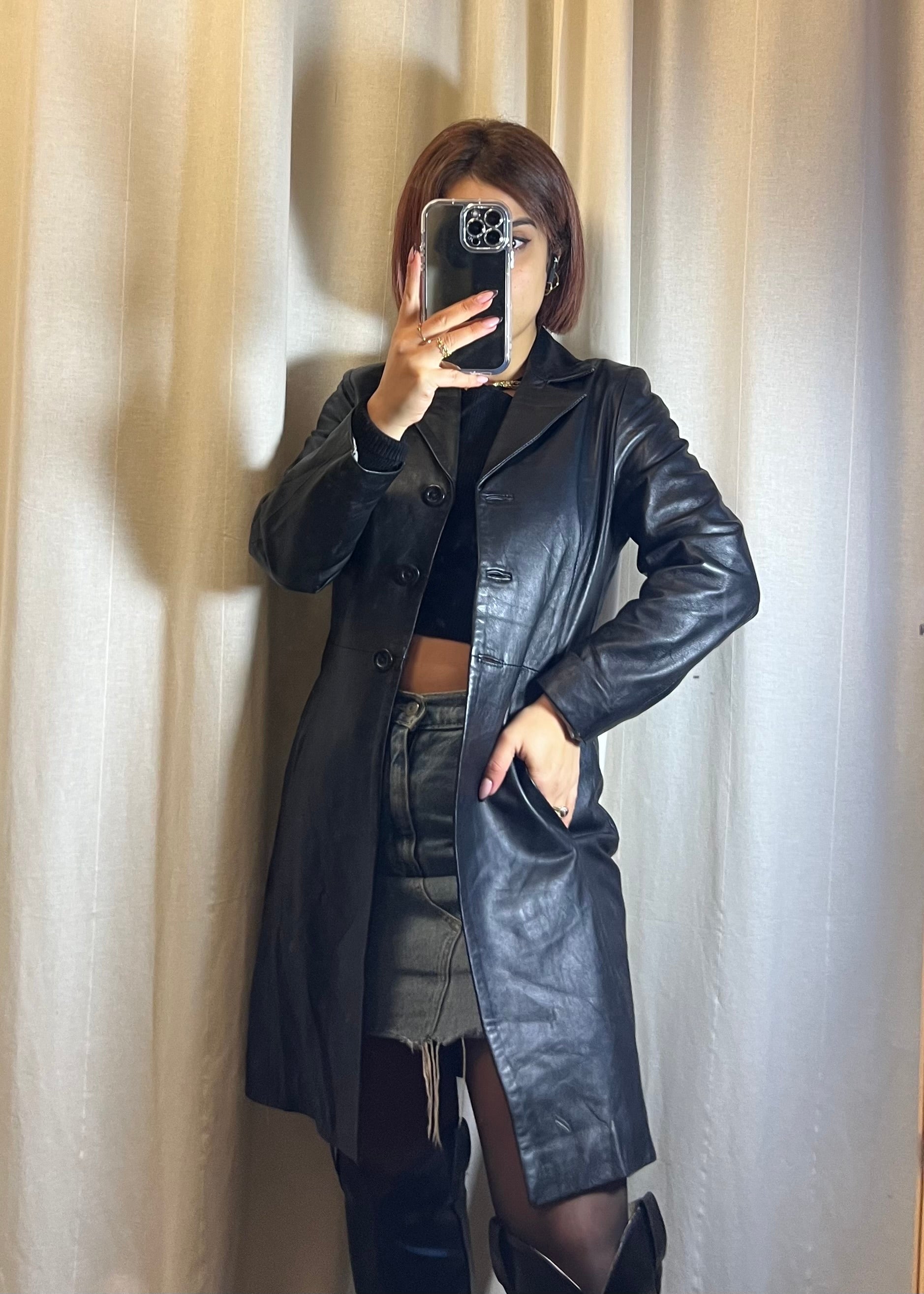 Elegante e dal fascino intramontabile, questa giacca in pelle lunga nera è pensata per mettere in risalto il punto vita, grazie a un taglio studiato che scolpisce la silhouette senza rinunciare alla comodità. Realizzata in pelle morbida e di alta qualità, offre una vestibilità perfetta per una taglia XS.