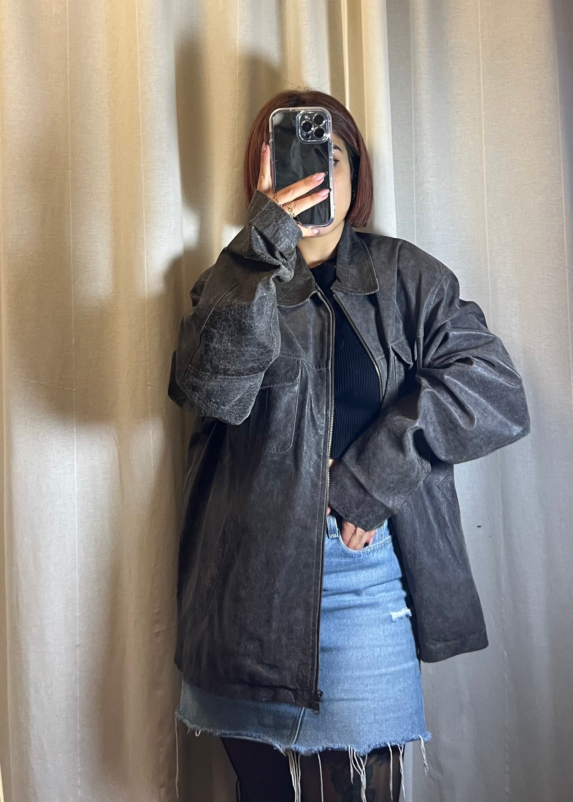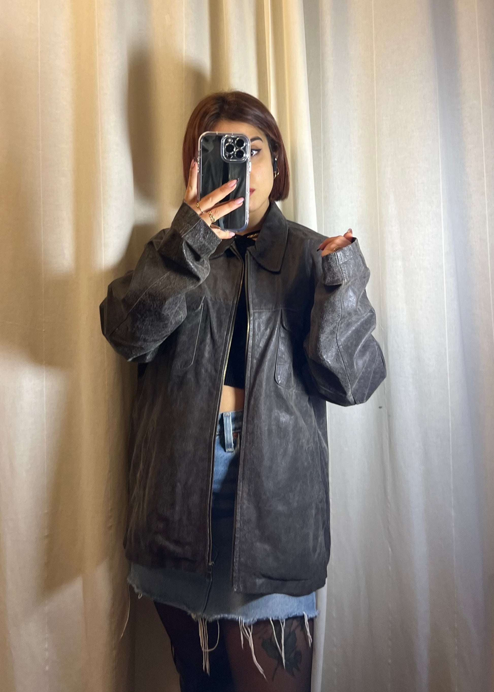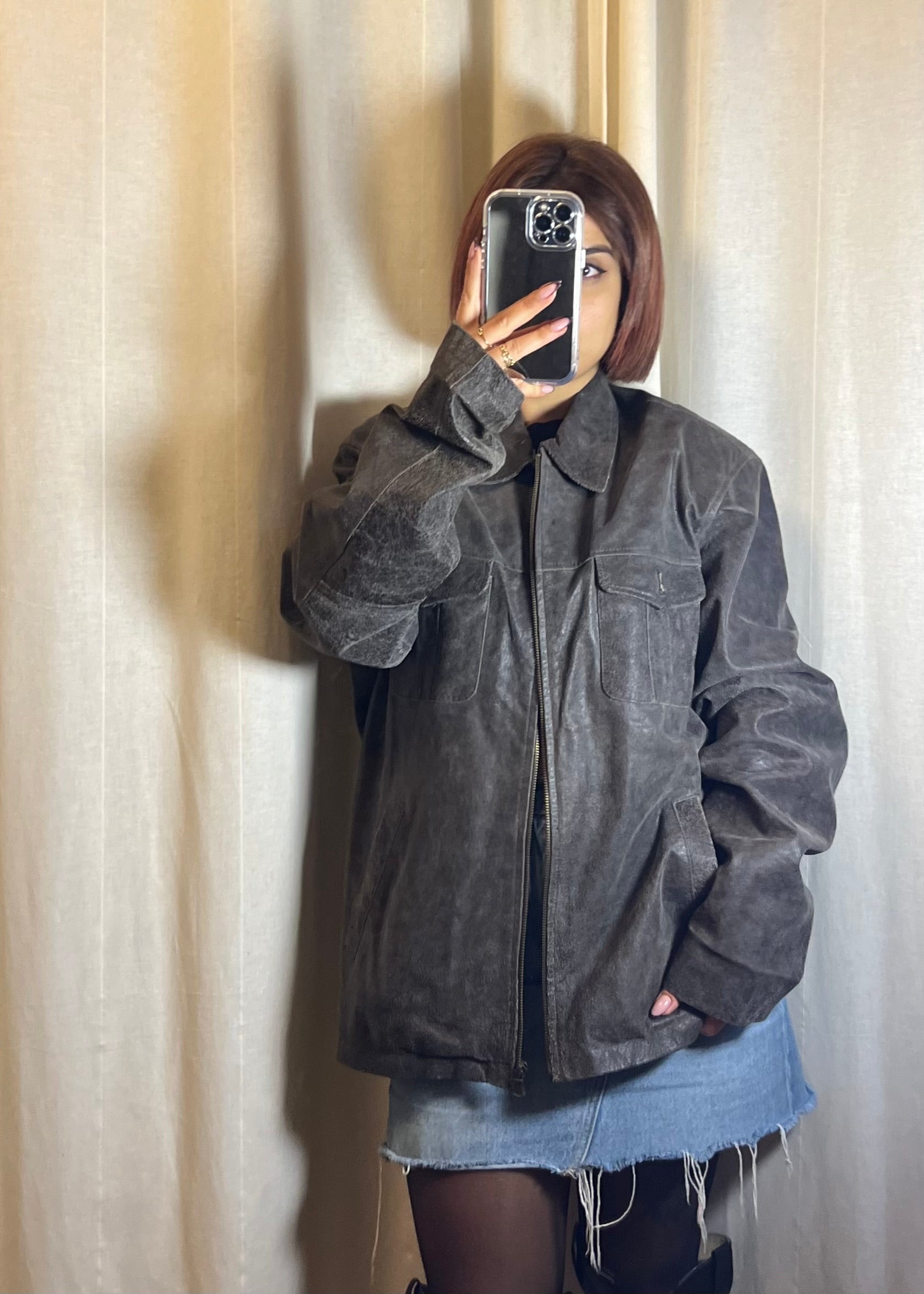 Questa giacca in pelle grigia dal marcato effetto invecchiato racchiude tutto il fascino del vintage autentico. La texture vissuta e le sfumature irregolari le conferiscono un carattere deciso e senza tempo, rendendola un capo unico nel suo genere. Il taglio essenziale valorizza la silhouette, mentre la pelle morbida garantisce comfort e libertà di movimento.