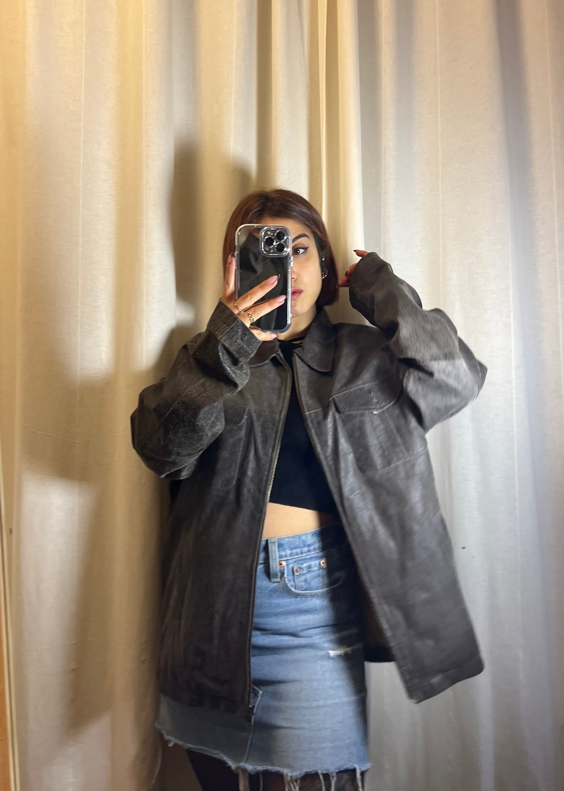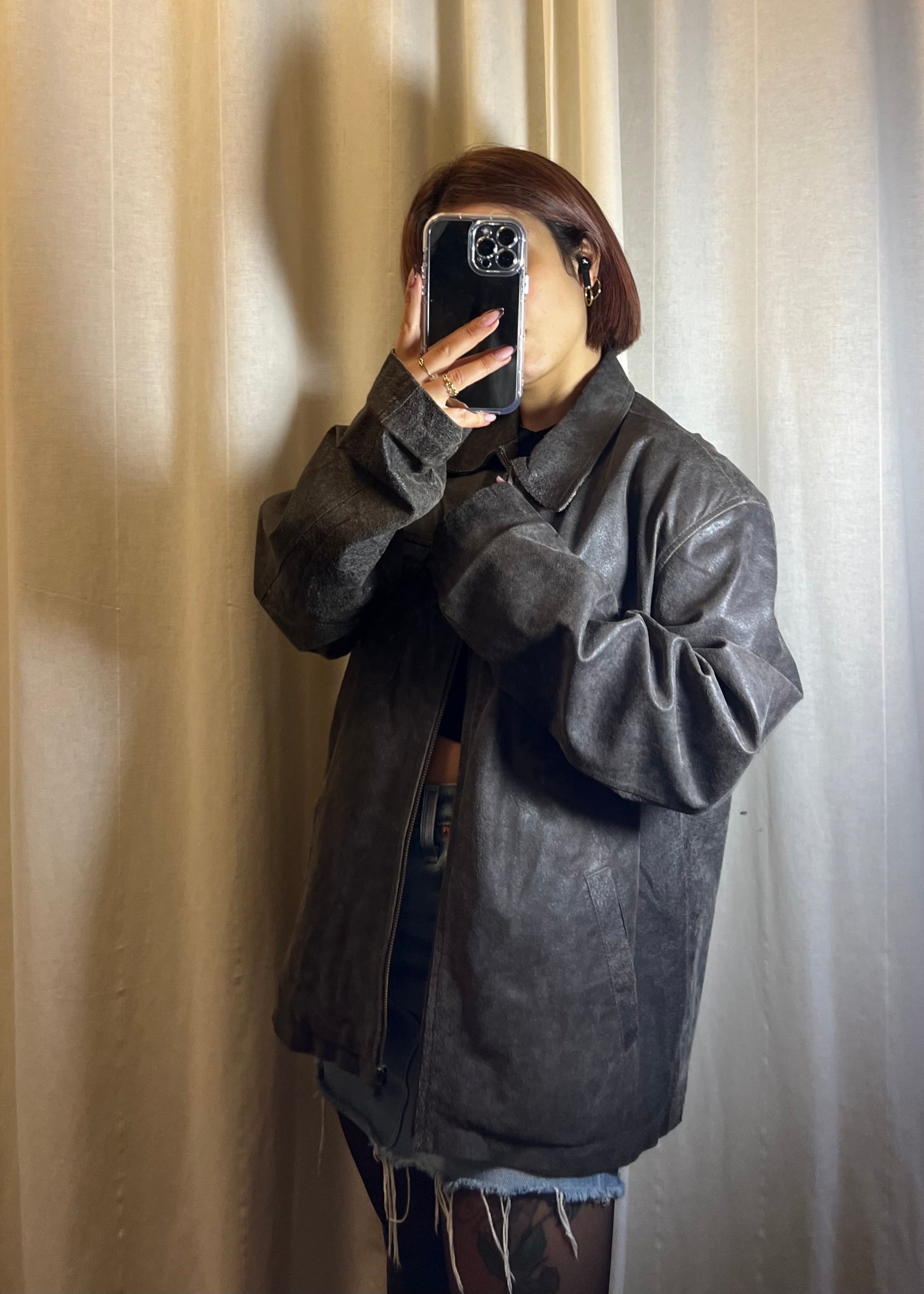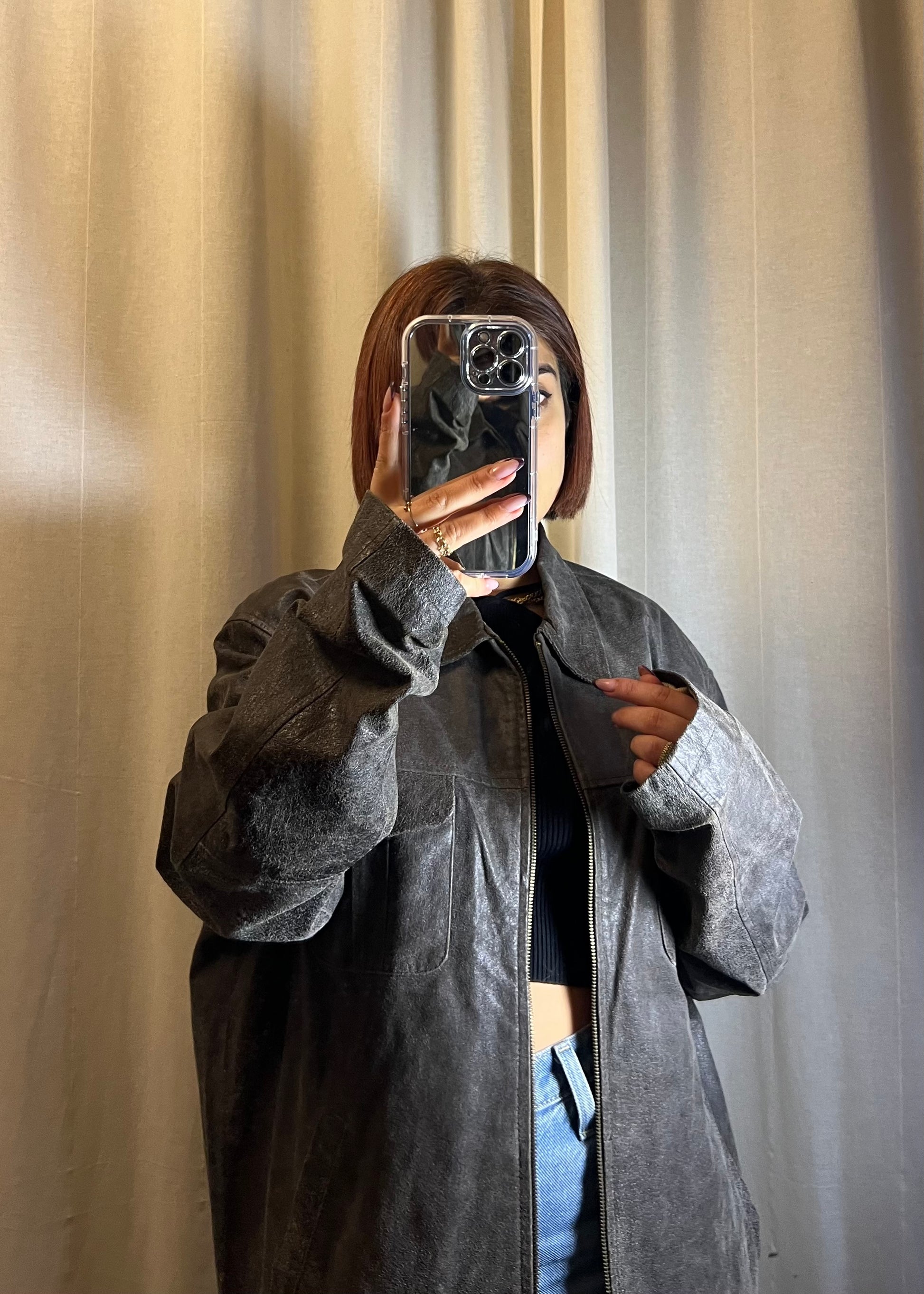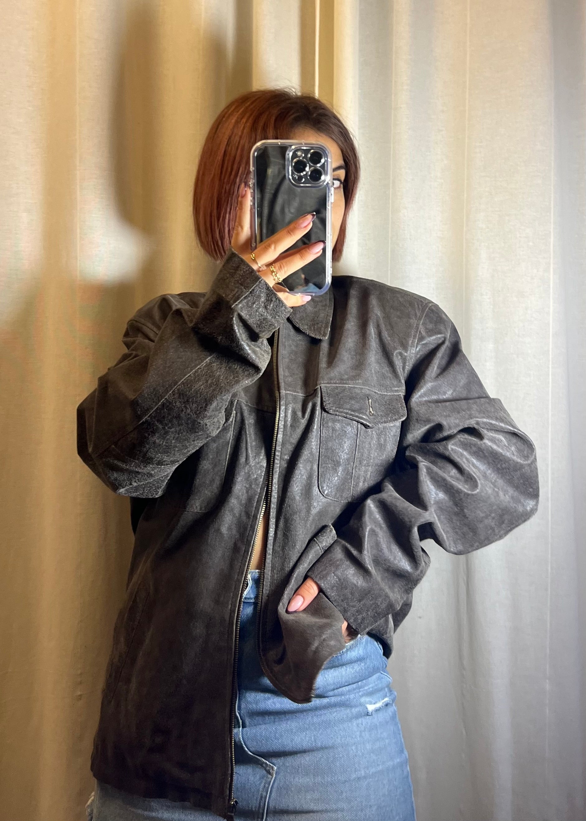Questa giacca in pelle grigia dal marcato effetto invecchiato racchiude tutto il fascino del vintage autentico. La texture vissuta e le sfumature irregolari le conferiscono un carattere deciso e senza tempo, rendendola un capo unico nel suo genere. Il taglio essenziale valorizza la silhouette, mentre la pelle morbida garantisce comfort e libertà di movimento.