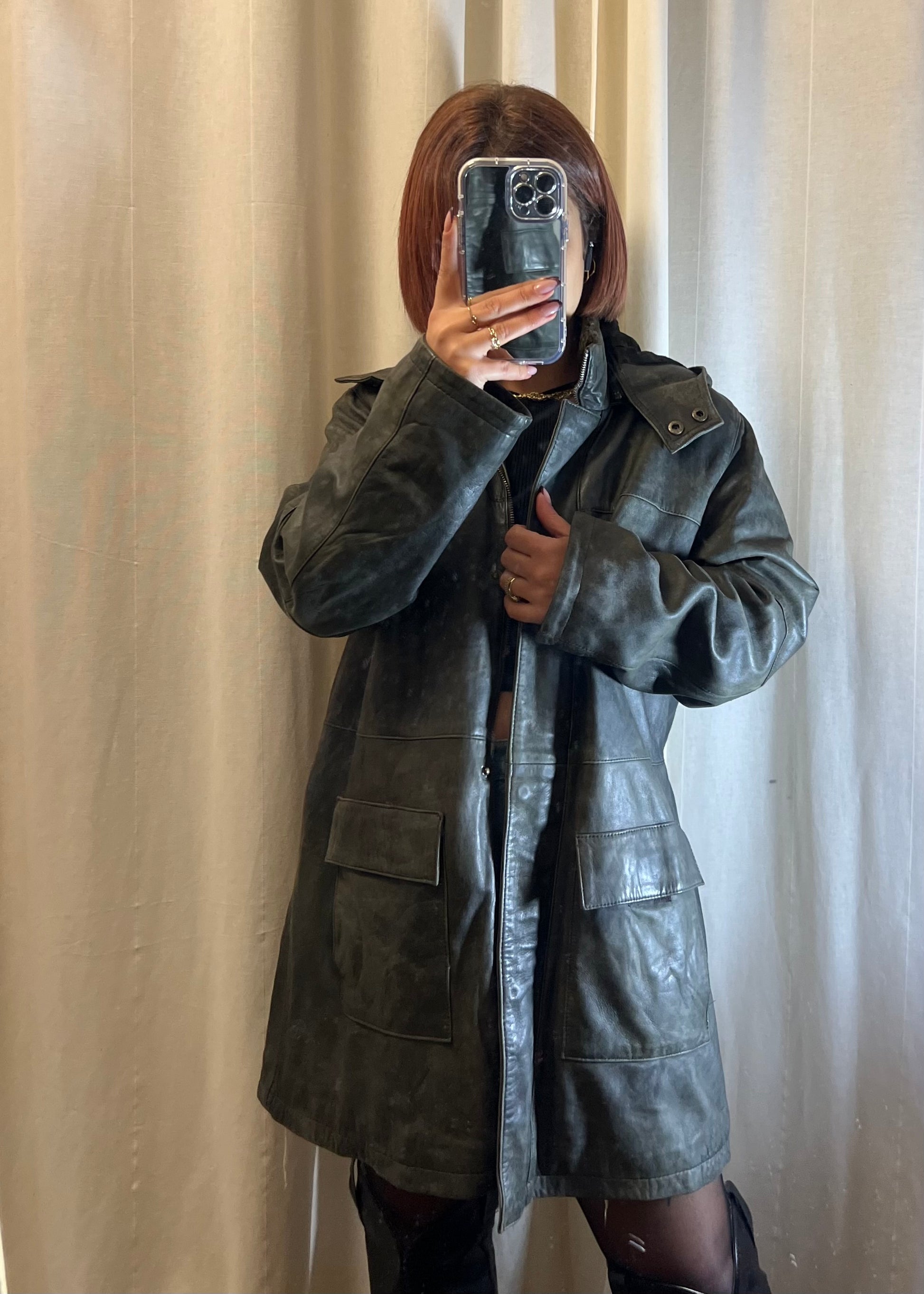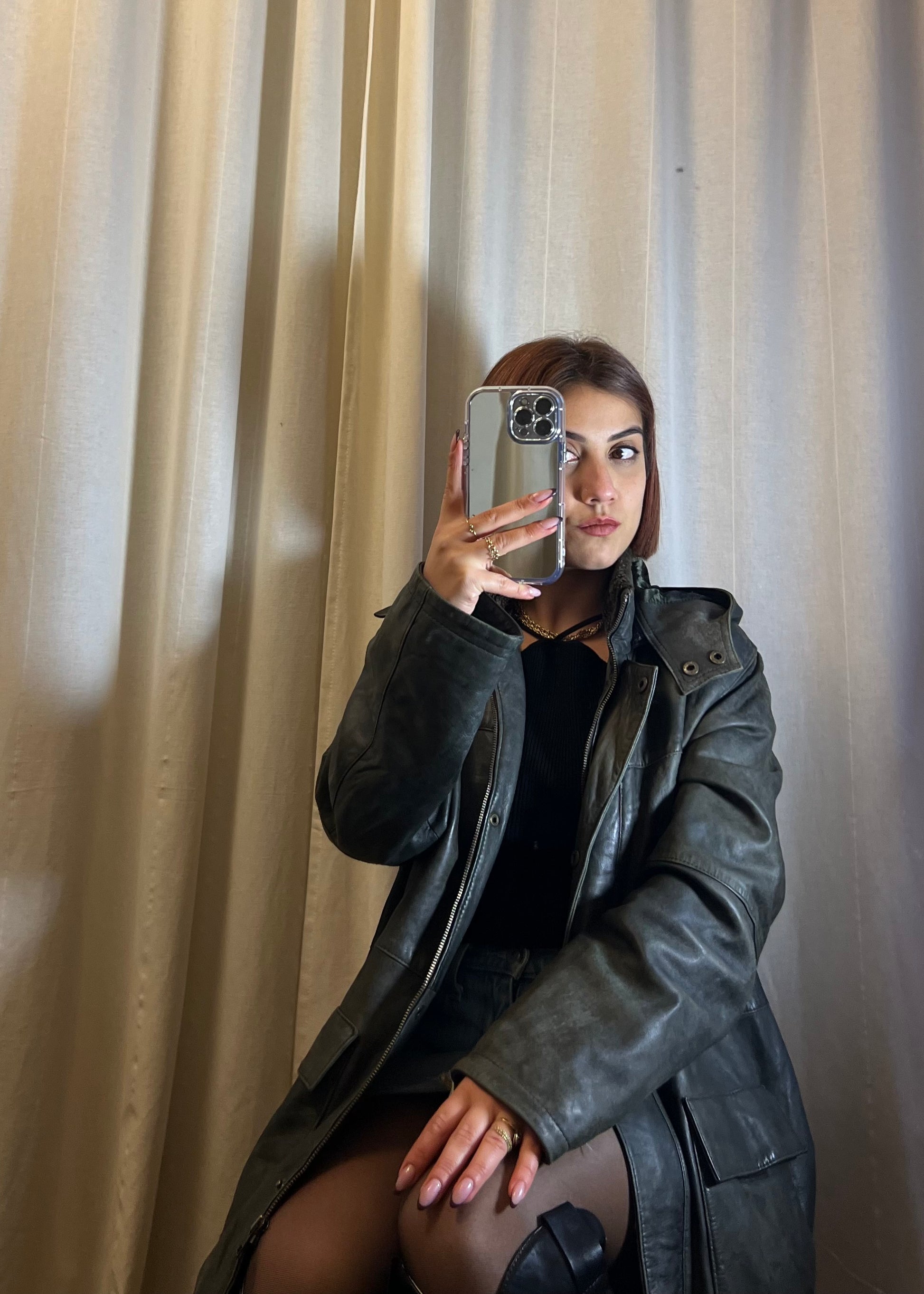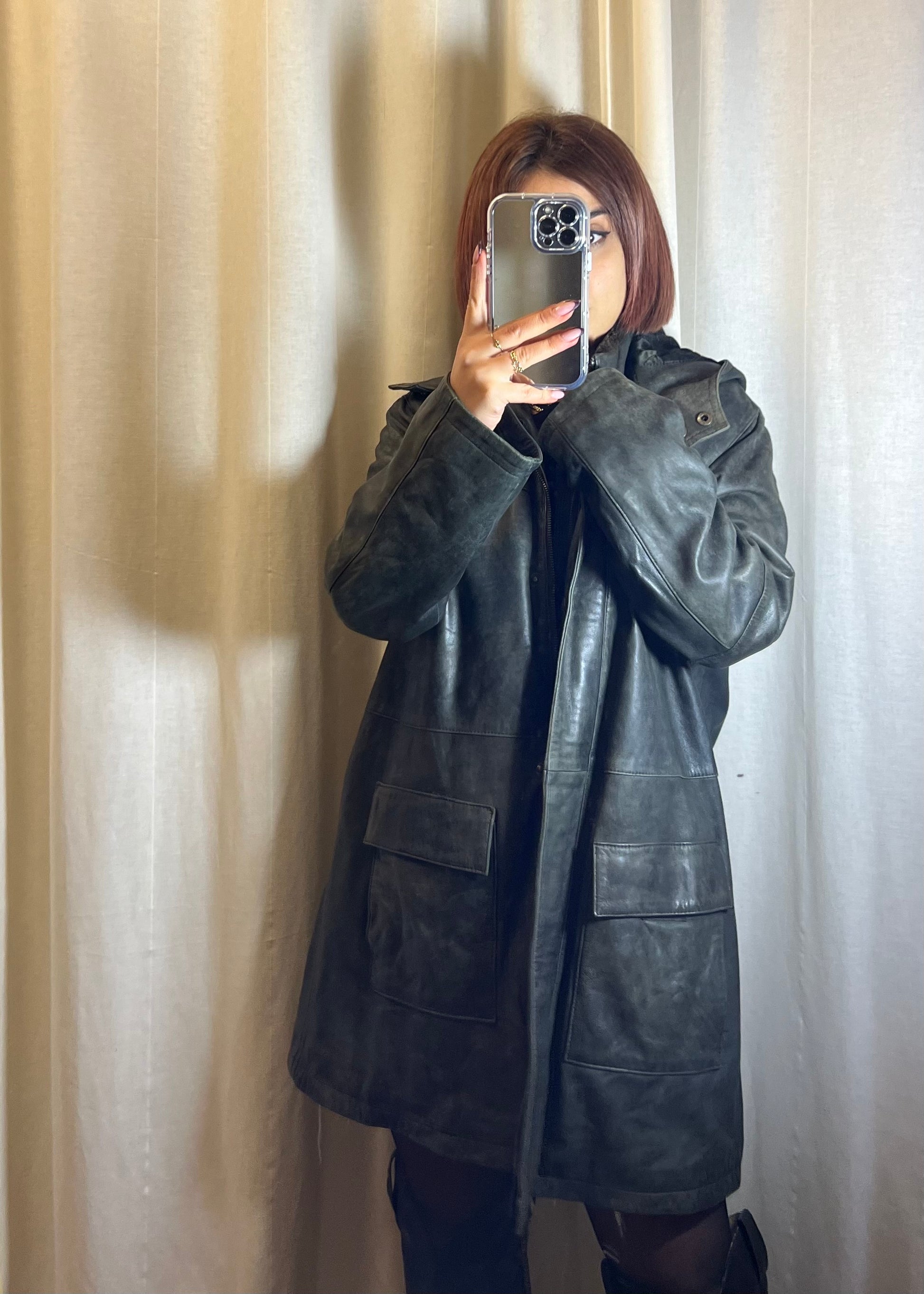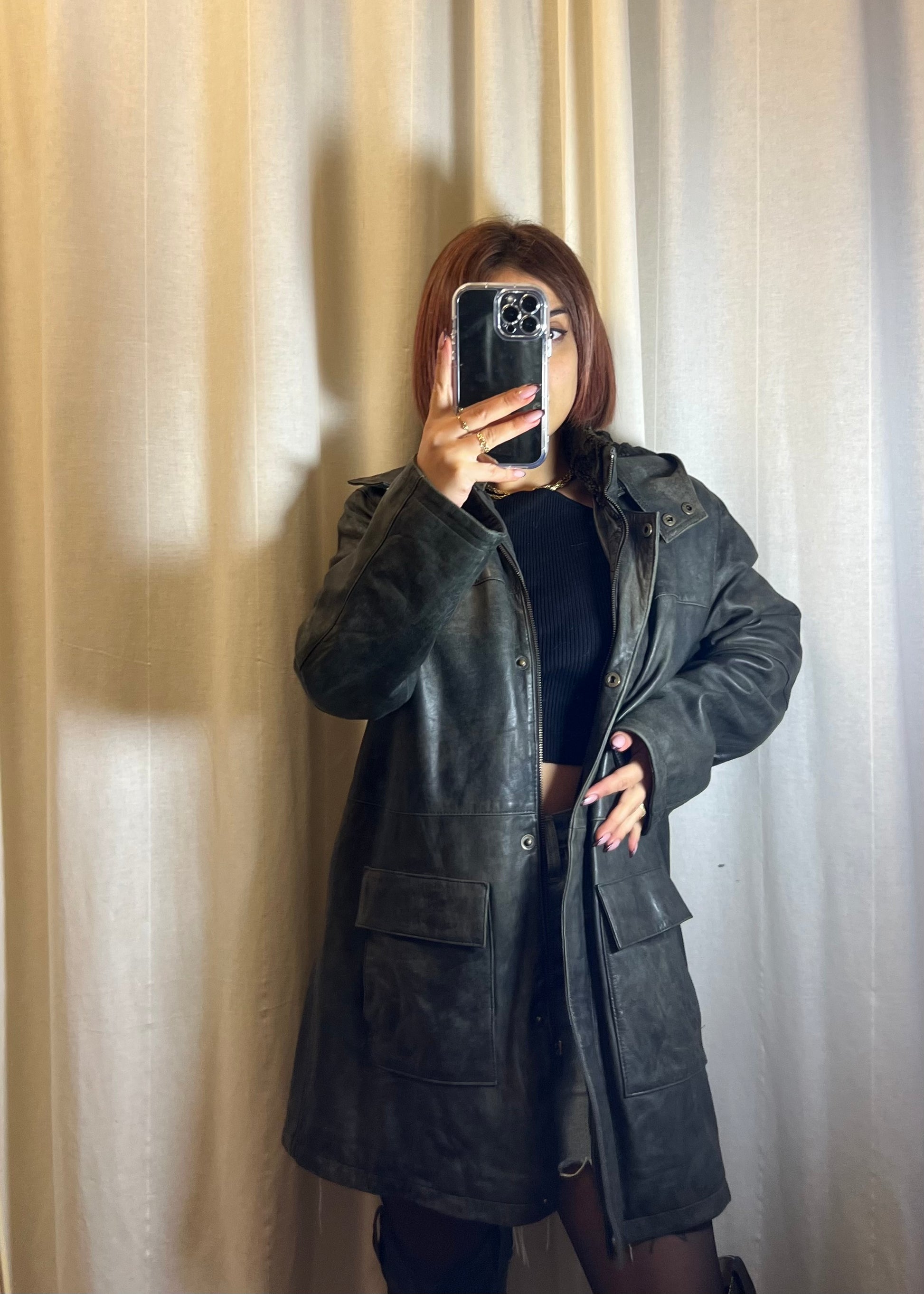 Elegante e grintosa allo stesso tempo, questa giacca in pelle verde scura è un capo versatile perfetto per affrontare la stagione fredda con stile. La lunghezza midi dona una silhouette moderna e slanciata, mentre il colletto rivestito in morbido pellicciotto aggiunge un tocco di comfort e calore, ideale per le giornate più rigide. Il capo è dotato di cappuccio e movibile Le ampie tasche frontali combinano praticità e design, offrendo spazio utile senza rinunciare all’estetica. Un capo sofisticato e originale, pensato per chi ama distinguersi con dettagli ricercati. Perfetto fino alla taglia 44.