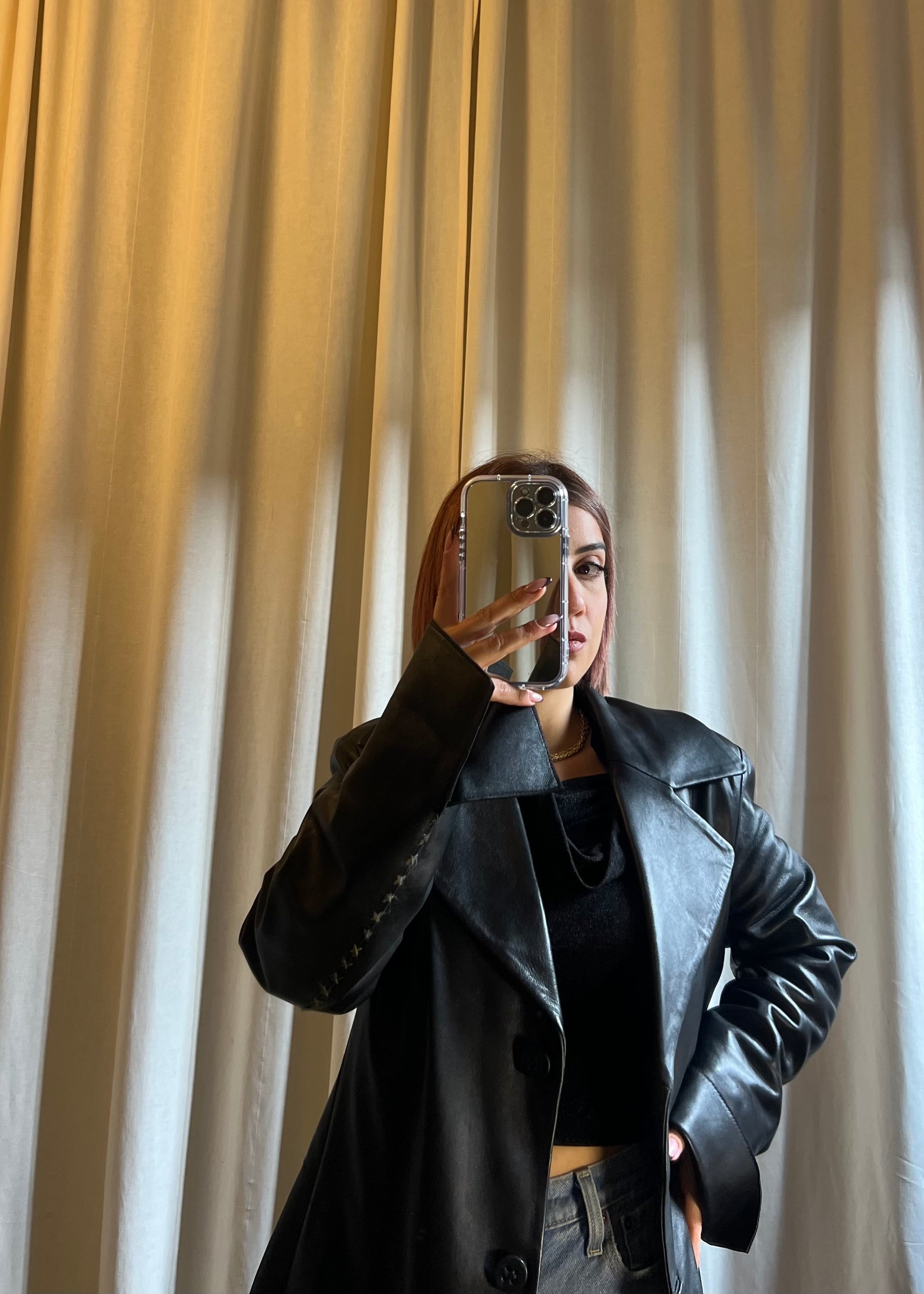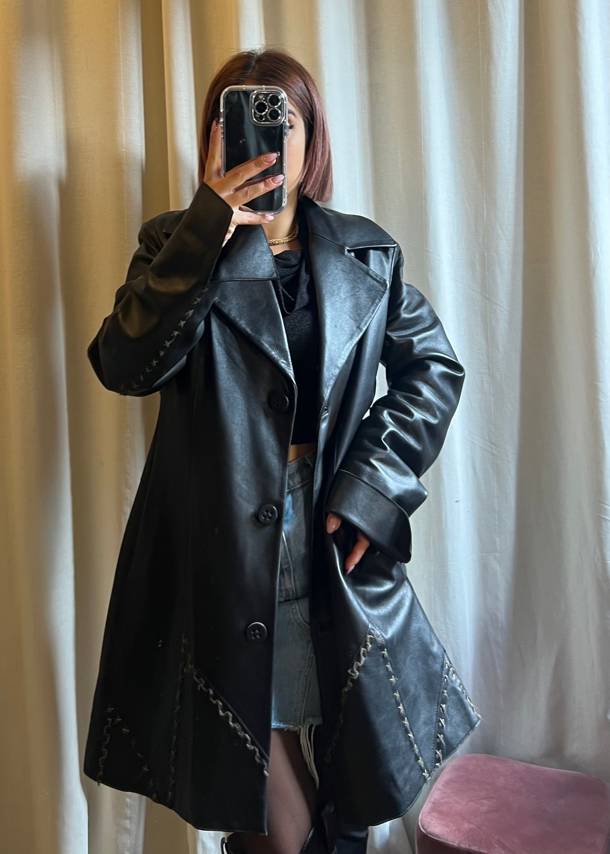 - Modello: giacca lunga in pelle