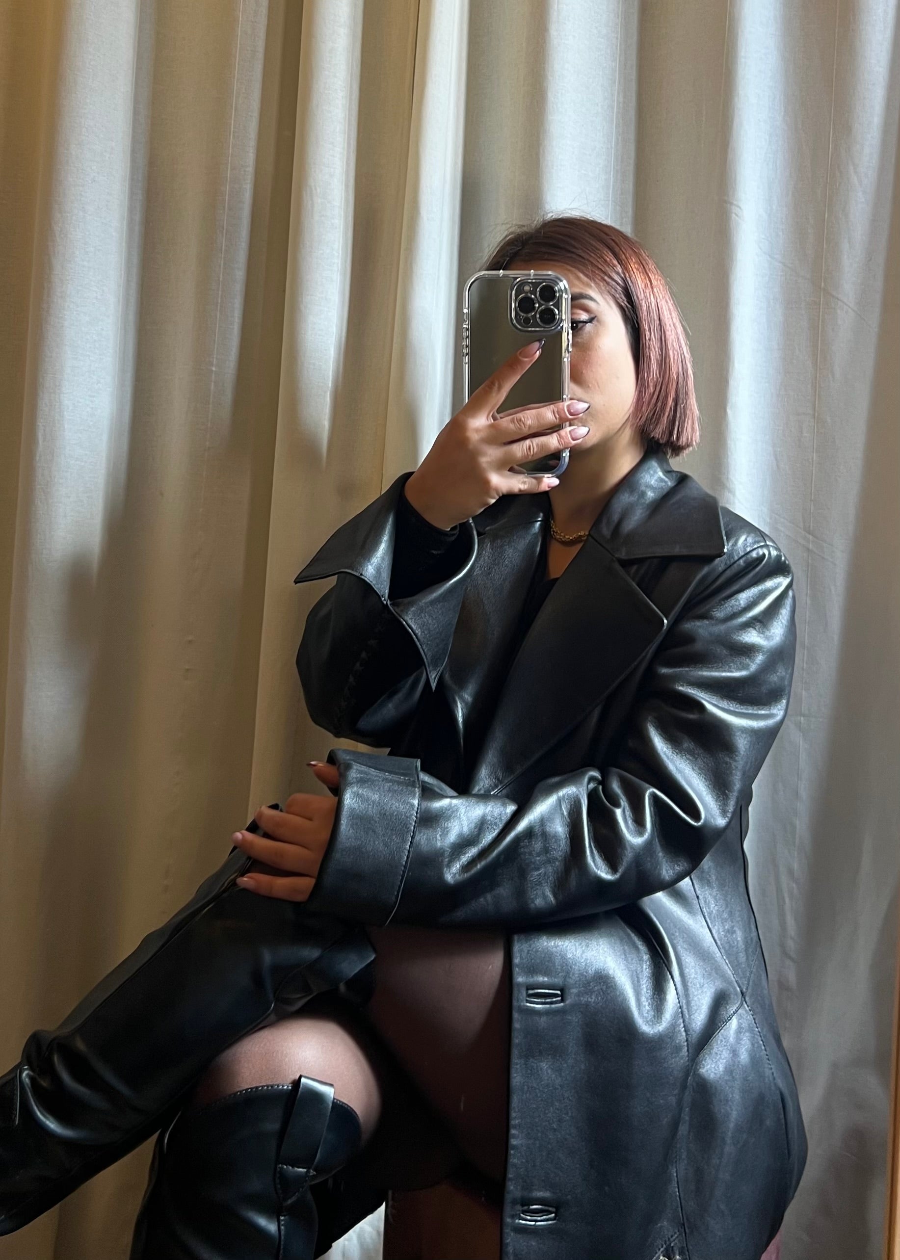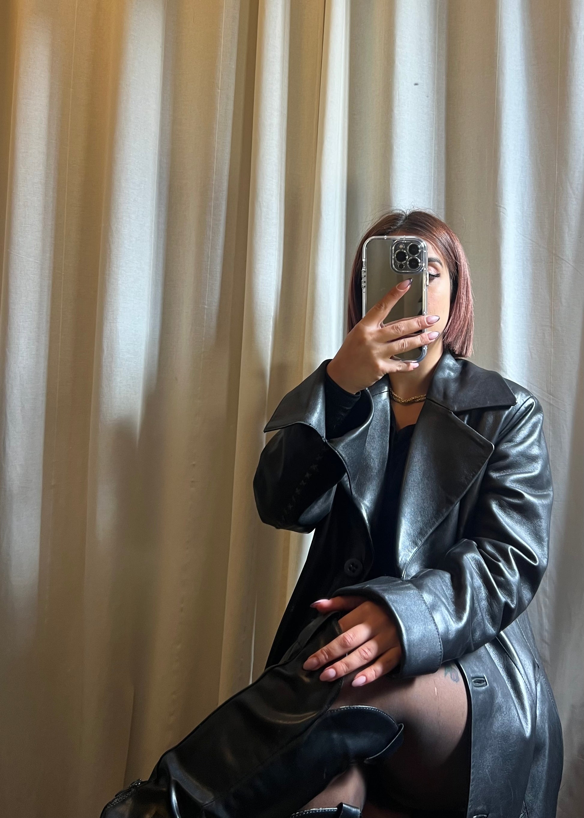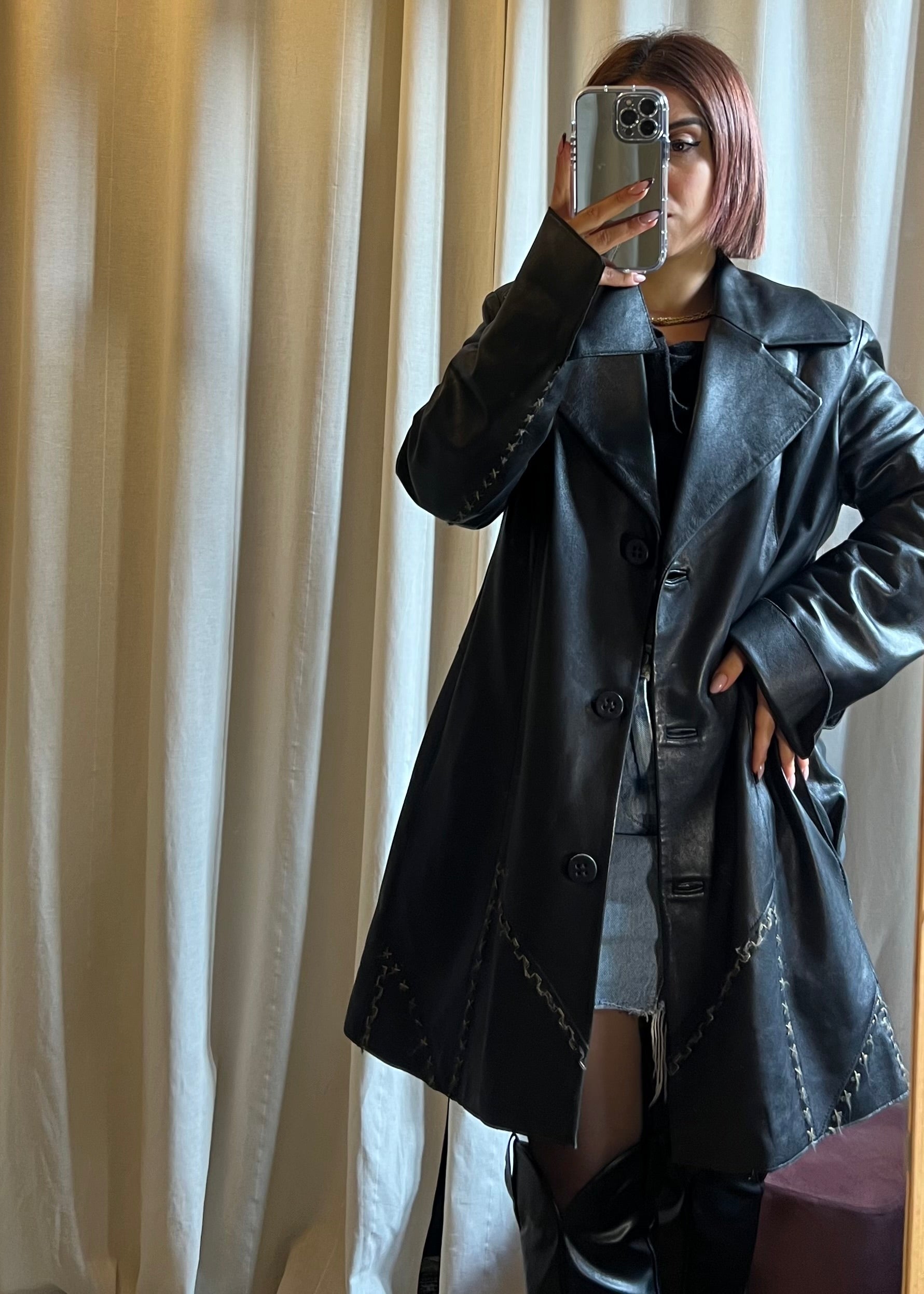 Giacca lunga in pelle