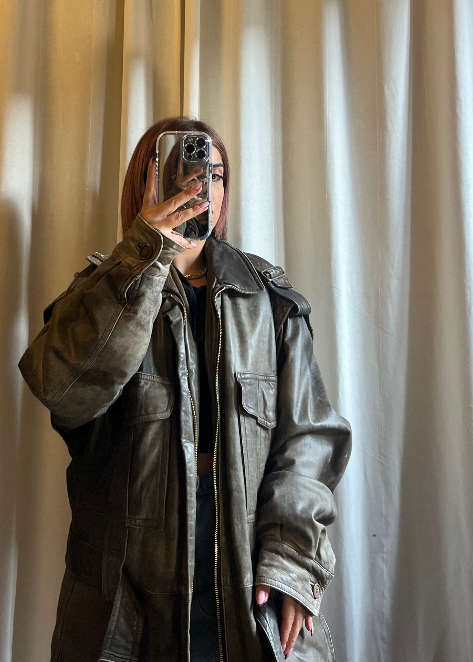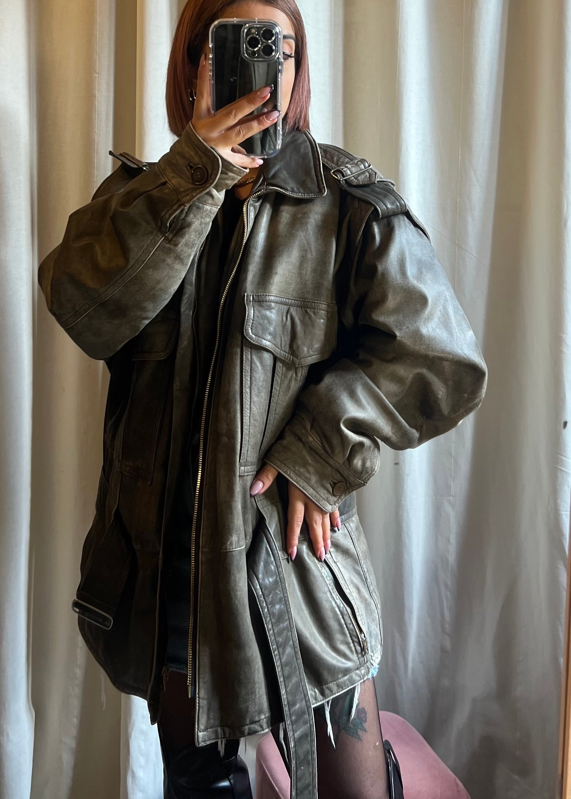 - Modello: giacca in pelle over