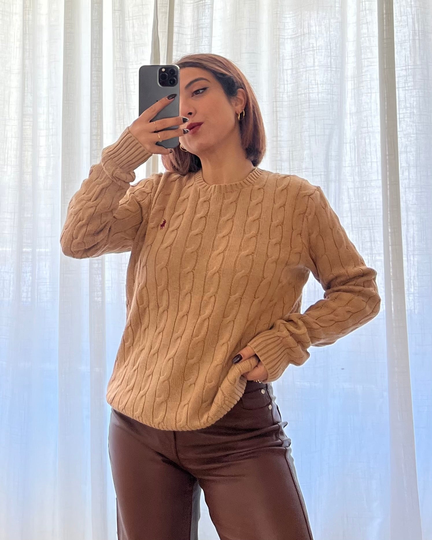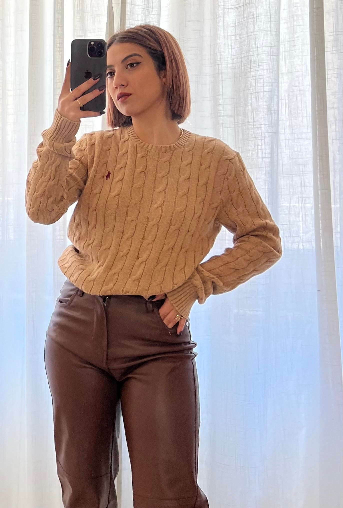 Il colore marrone miele lo rende caldo e versatile, perfetto da abbinare a look casual o più ricercati. Taglia S con vestibilità comoda, consigliata fino a una 42 italiana.
