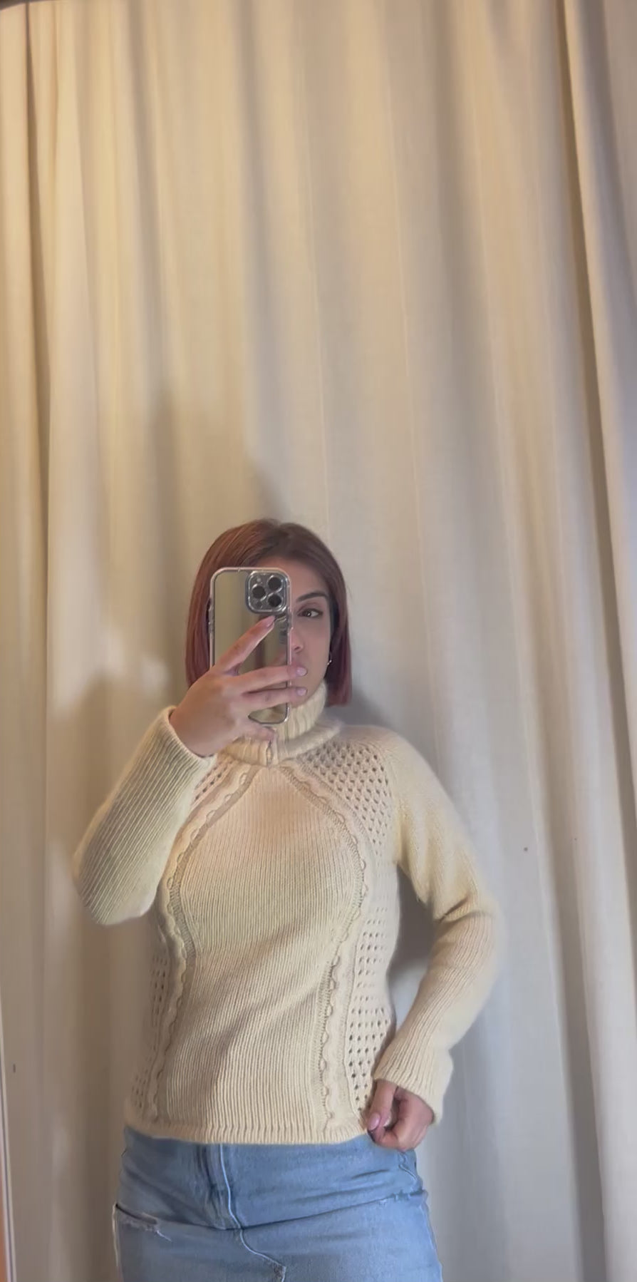 Maglione in lana dal colore bianco crema, elegante e raffinato.