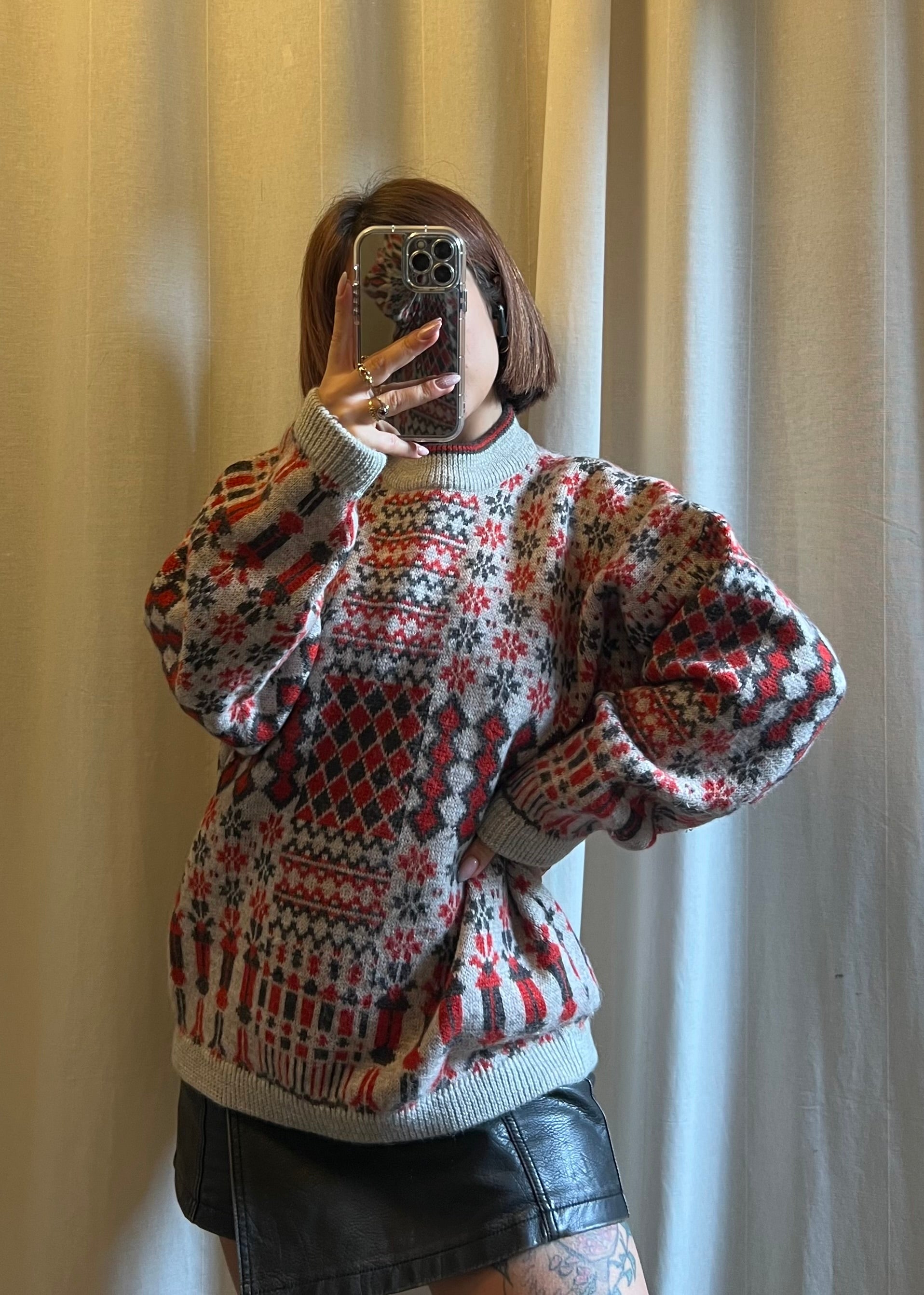 Le lavorazioni richiamano la tradizione artigianale dei maglioni nordici, rendendo questo capo unico e ricco di carattere.
