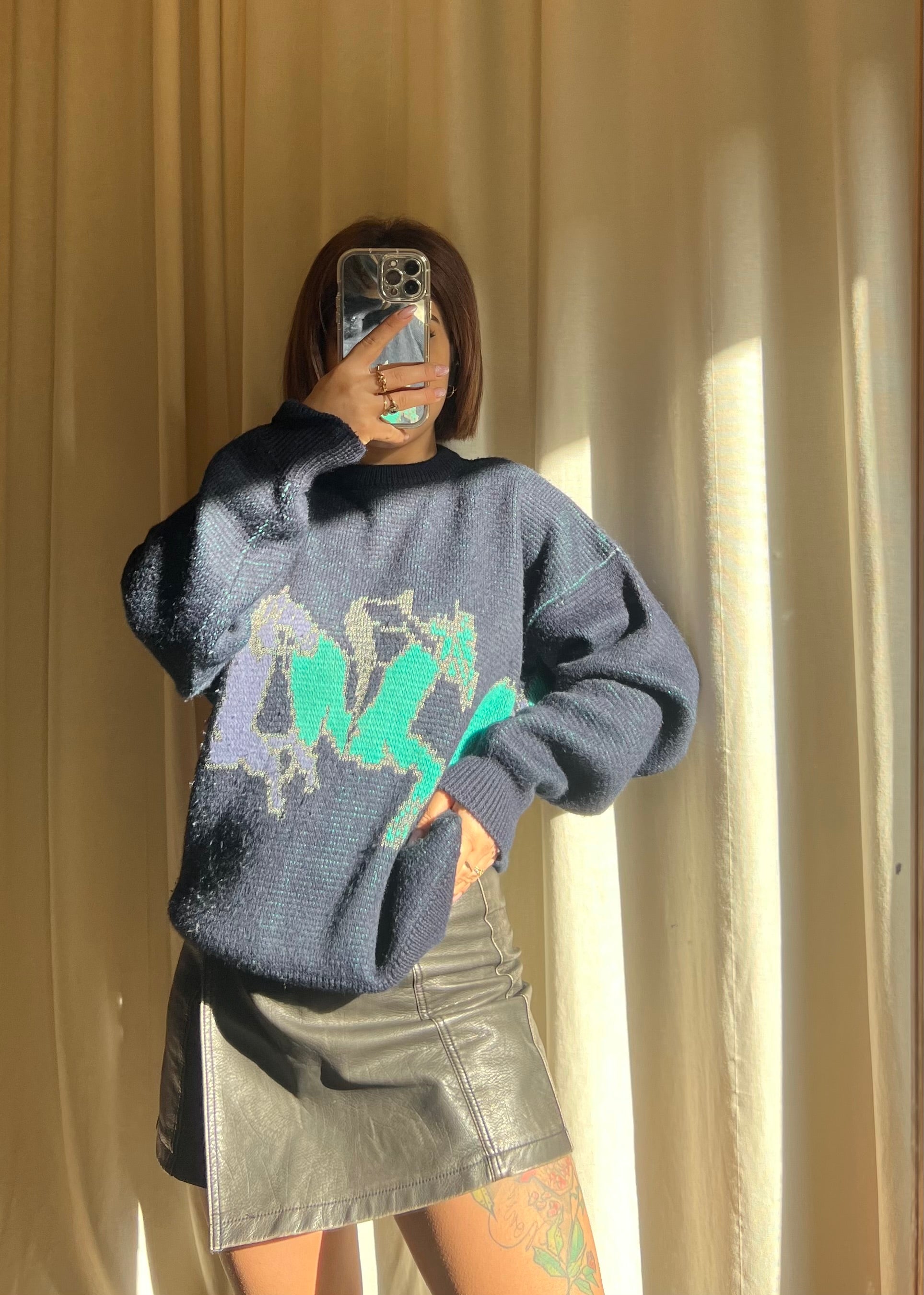Un pezzo unico per veri amanti dello stile vintage. Questo maglione presenta un stupendo disegno raffigurante tre uomini a cavallo, ognuno con il suo cavallo distinto, un motivo artistico e affascinante che cattura lo sguardo. I colori sono armoniosi e ben conservati, evidenziando la qualità e la cura del capo. Il maglione è in ottime condizioni, senza segni di usura, e offre una vestibilità comoda che arriva perfettamente fino a Natale, ideale per look sia casual che raffinati. Un vero tesoro per collezionisti e appassionati di moda vintage.