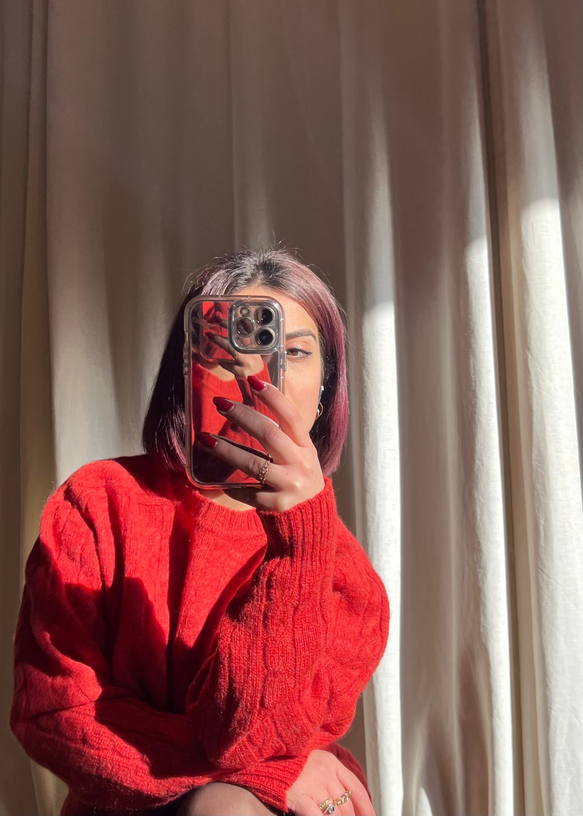 Maglione vintage a trecce, realizzato in 100% lana di alta qualità, in una vibrante tonalità tra rosso e arancio. Perfetto da indossare oversize: in foto lo vedete su una taglia S, ma è consigliato fino a una taglia L. Morbido, caldo e in ottime condizioni, è il capo ideale per aggiungere un tocco di colore e stile ai look invernali.