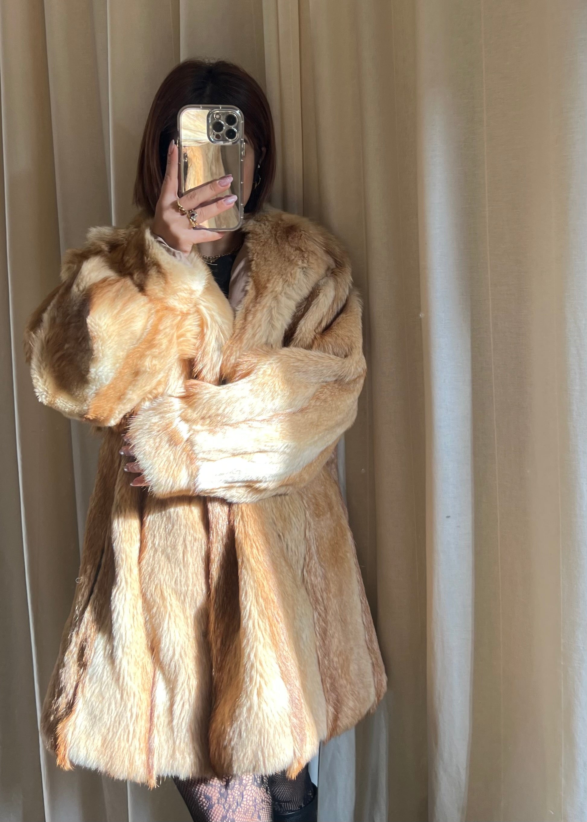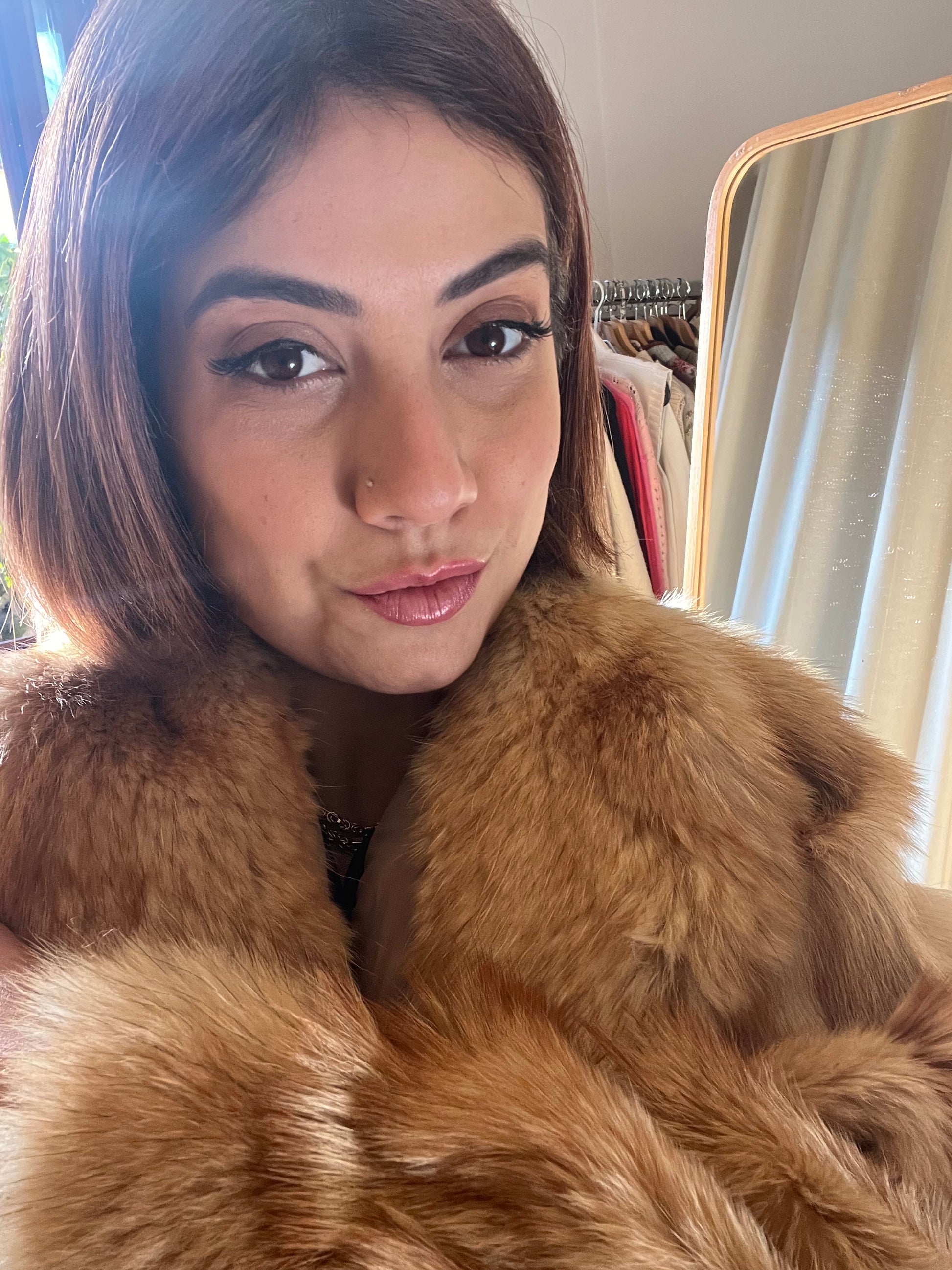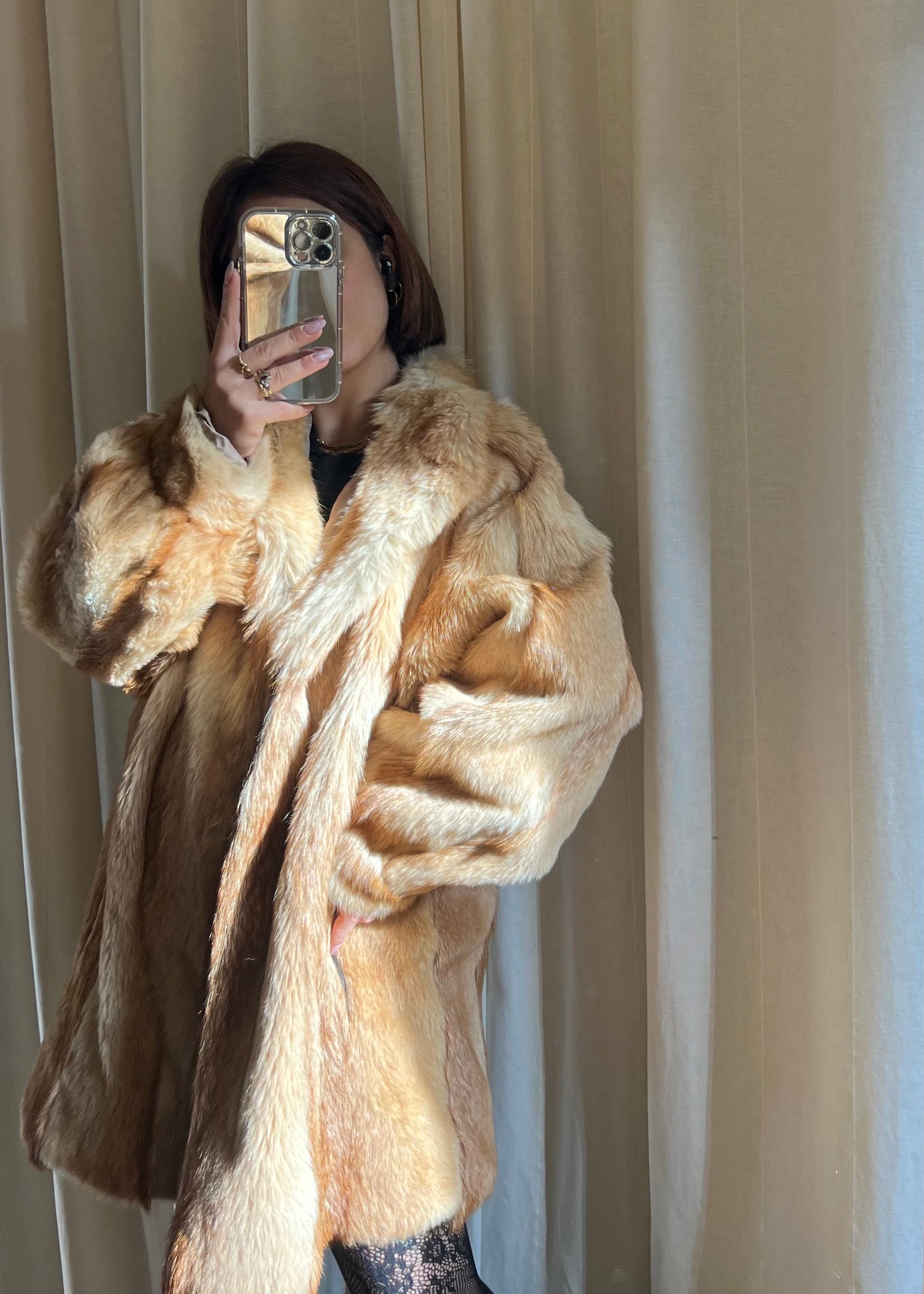 Pelliccia vintage in volpe dai toni caldi e dorati, un capo di grande fascino e raffinatezza.