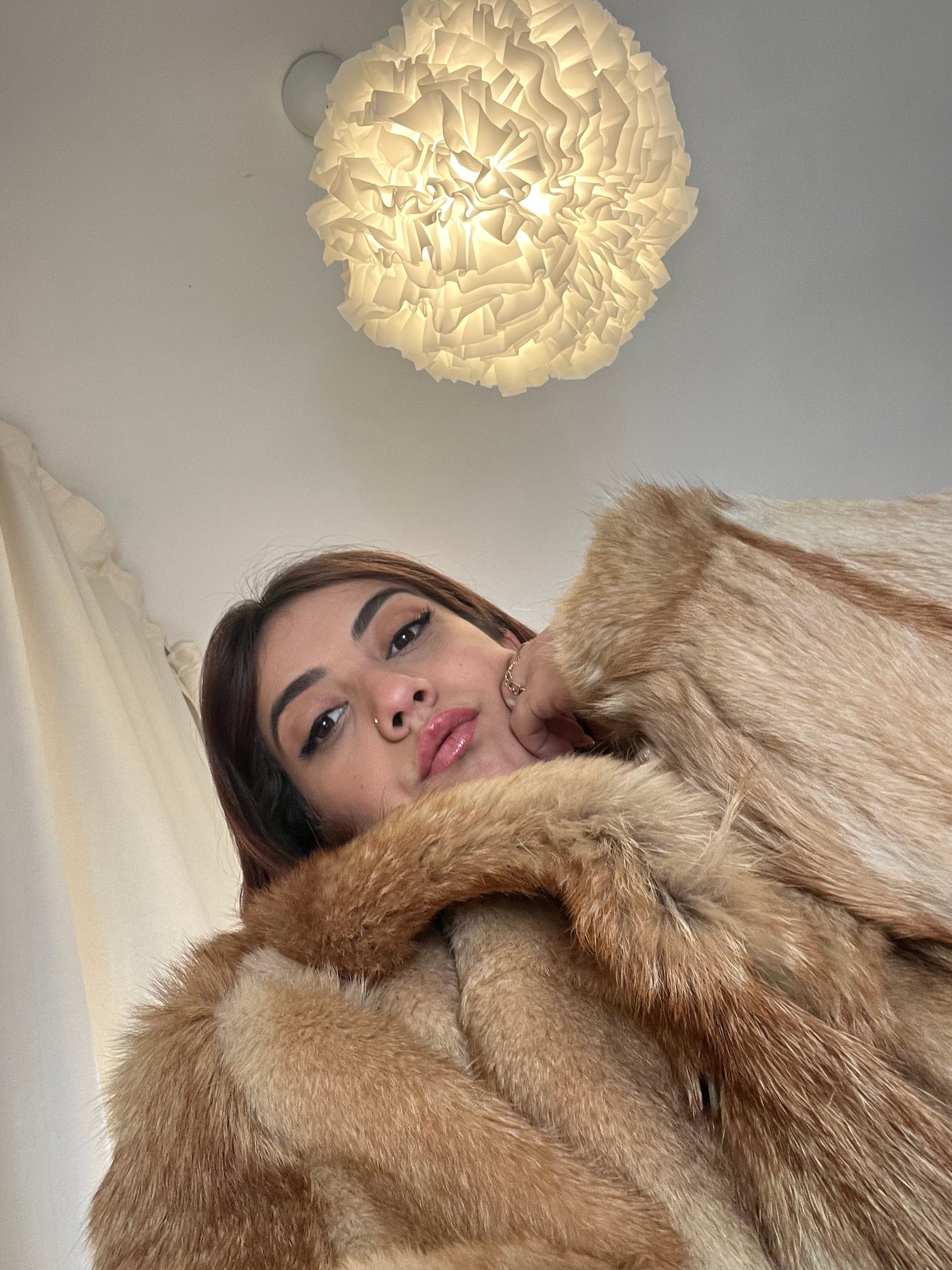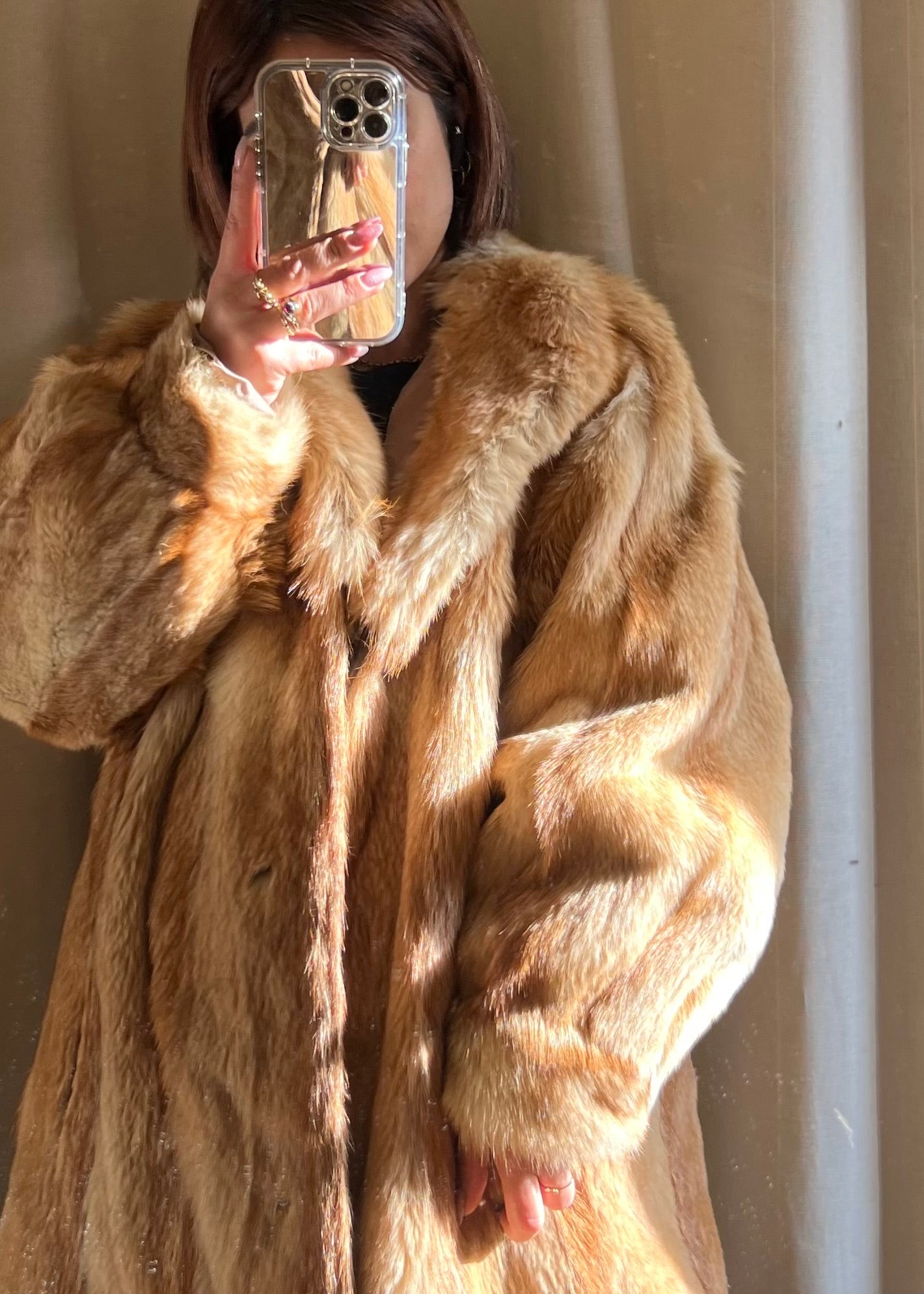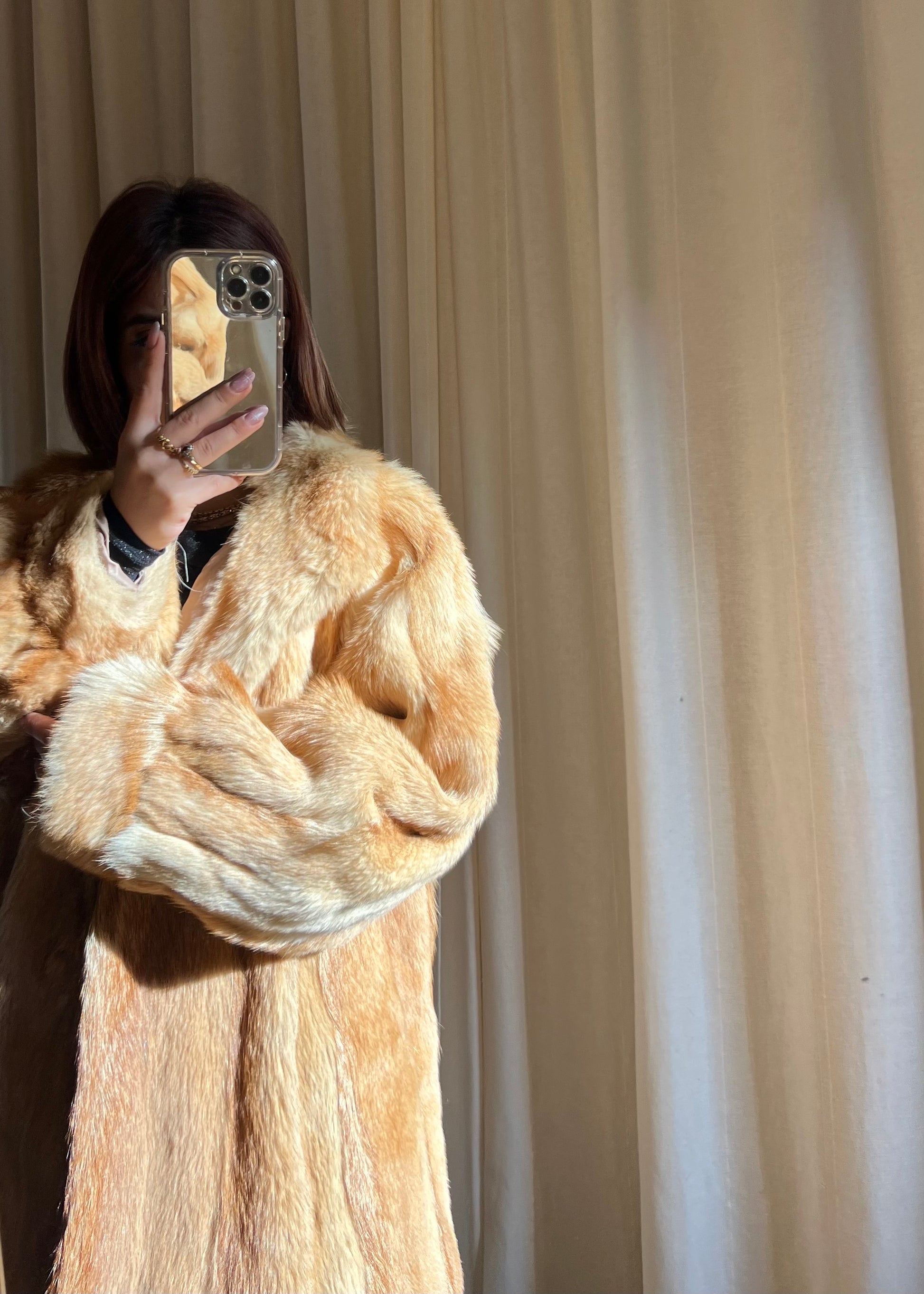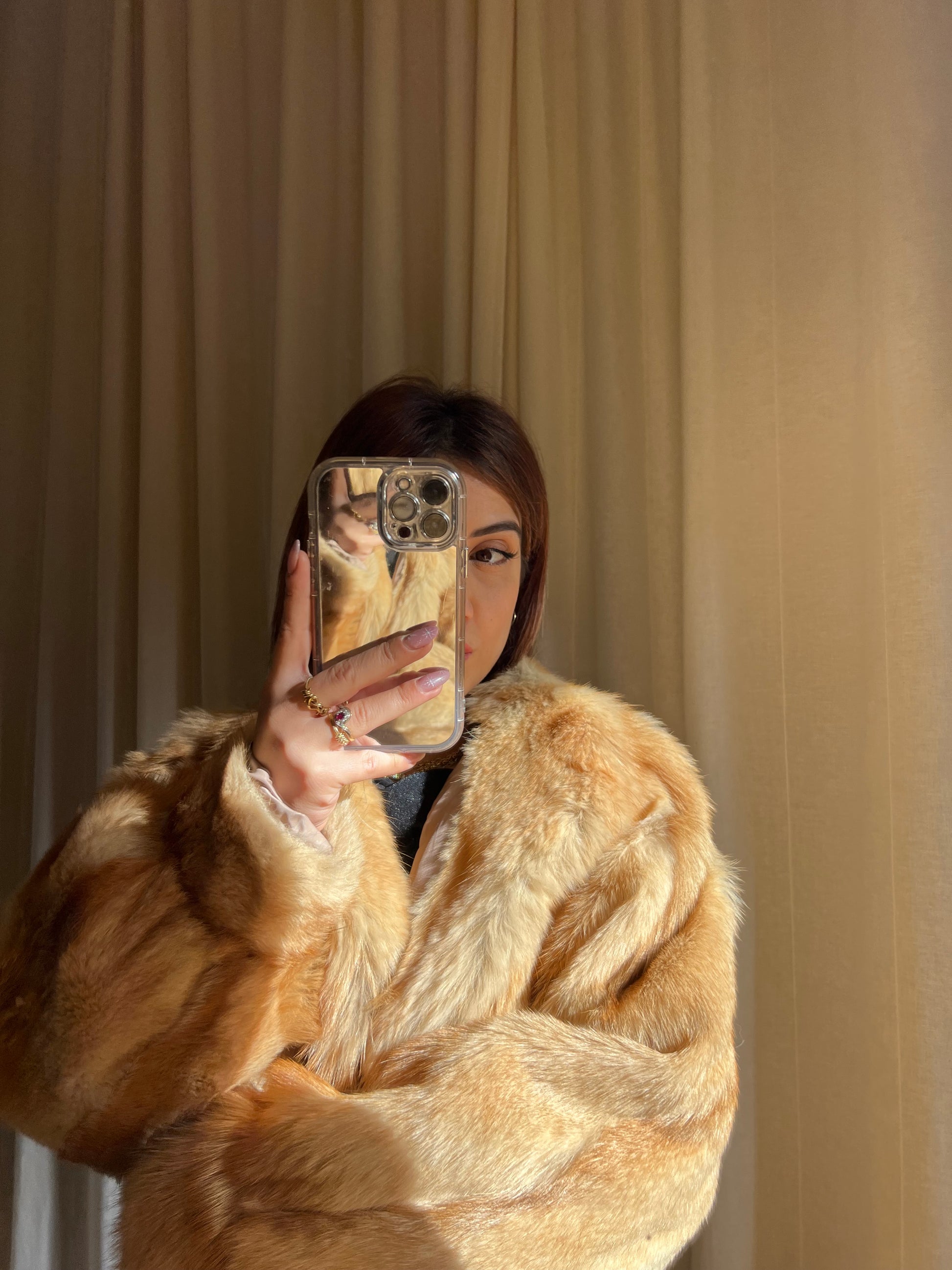 Pelliccia vintage in volpe dai toni caldi e dorati, un capo di grande fascino e raffinatezza.