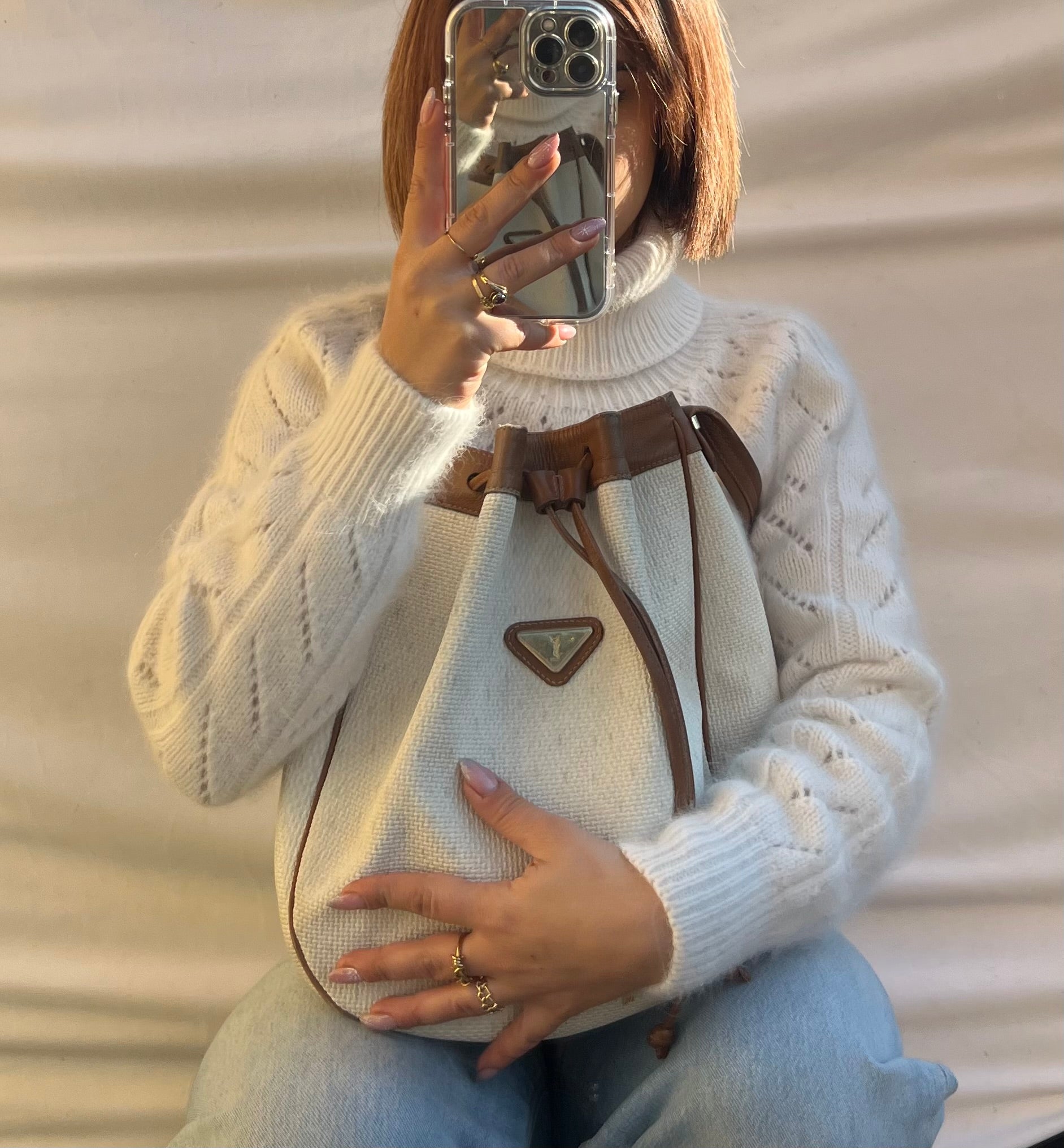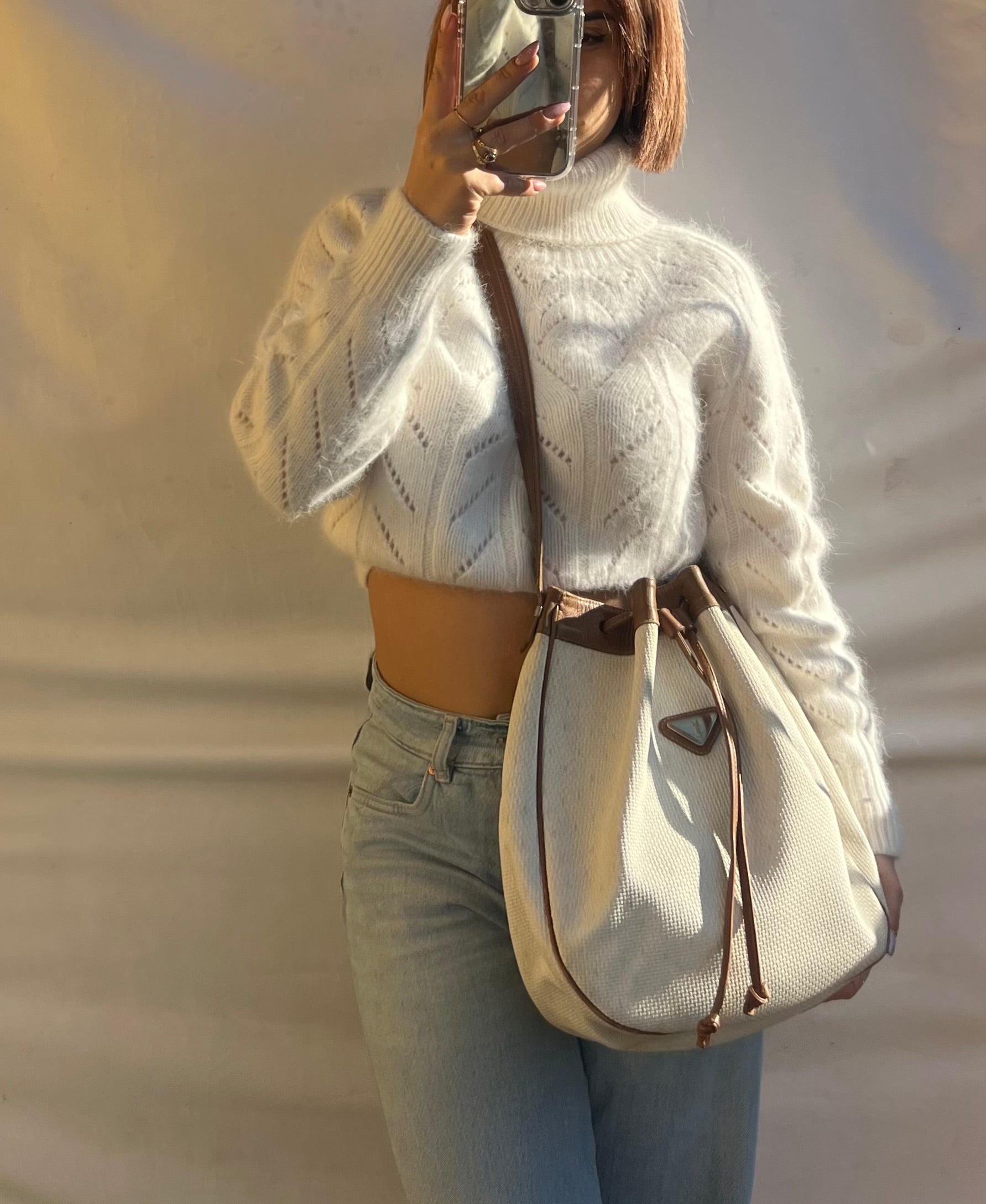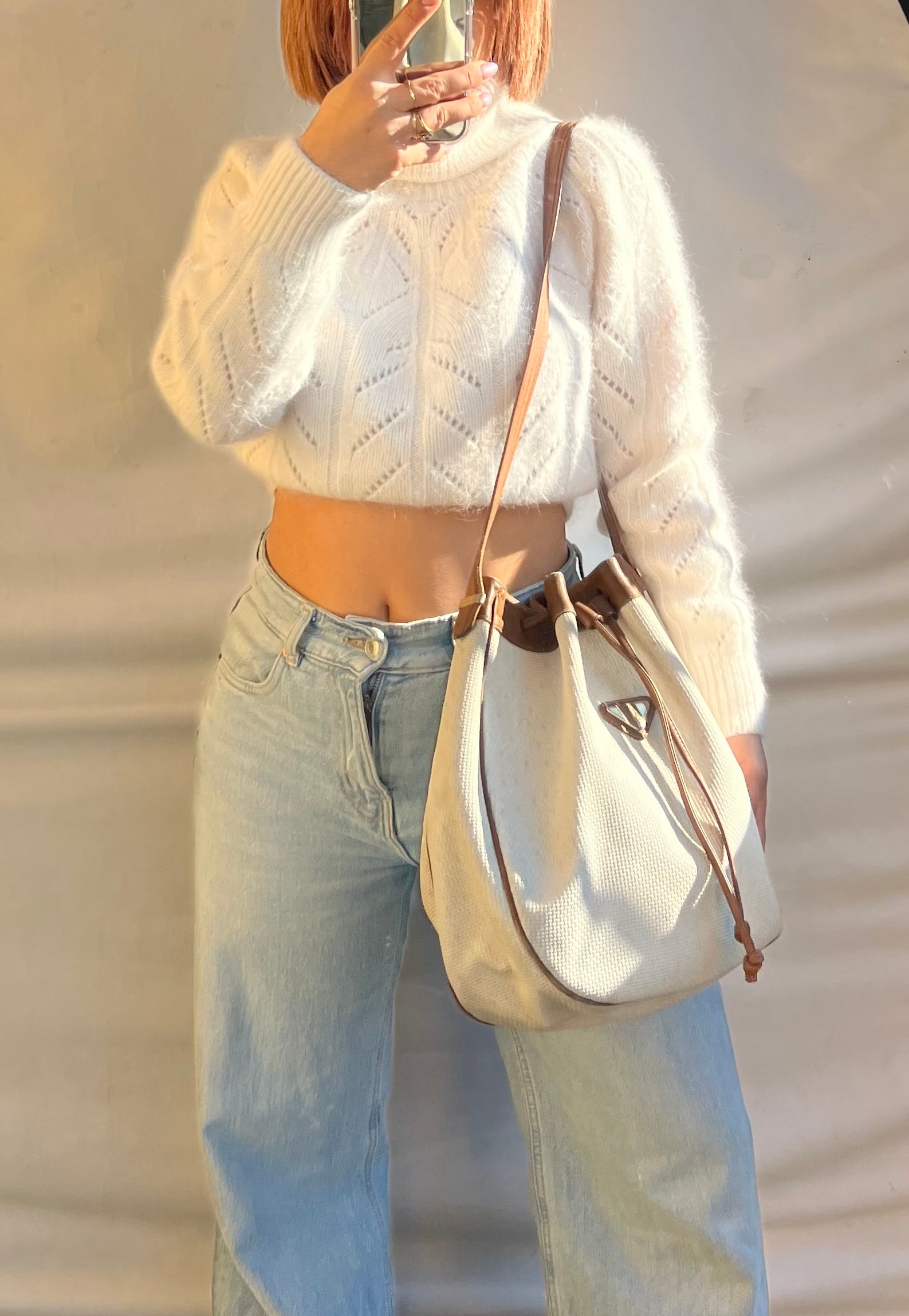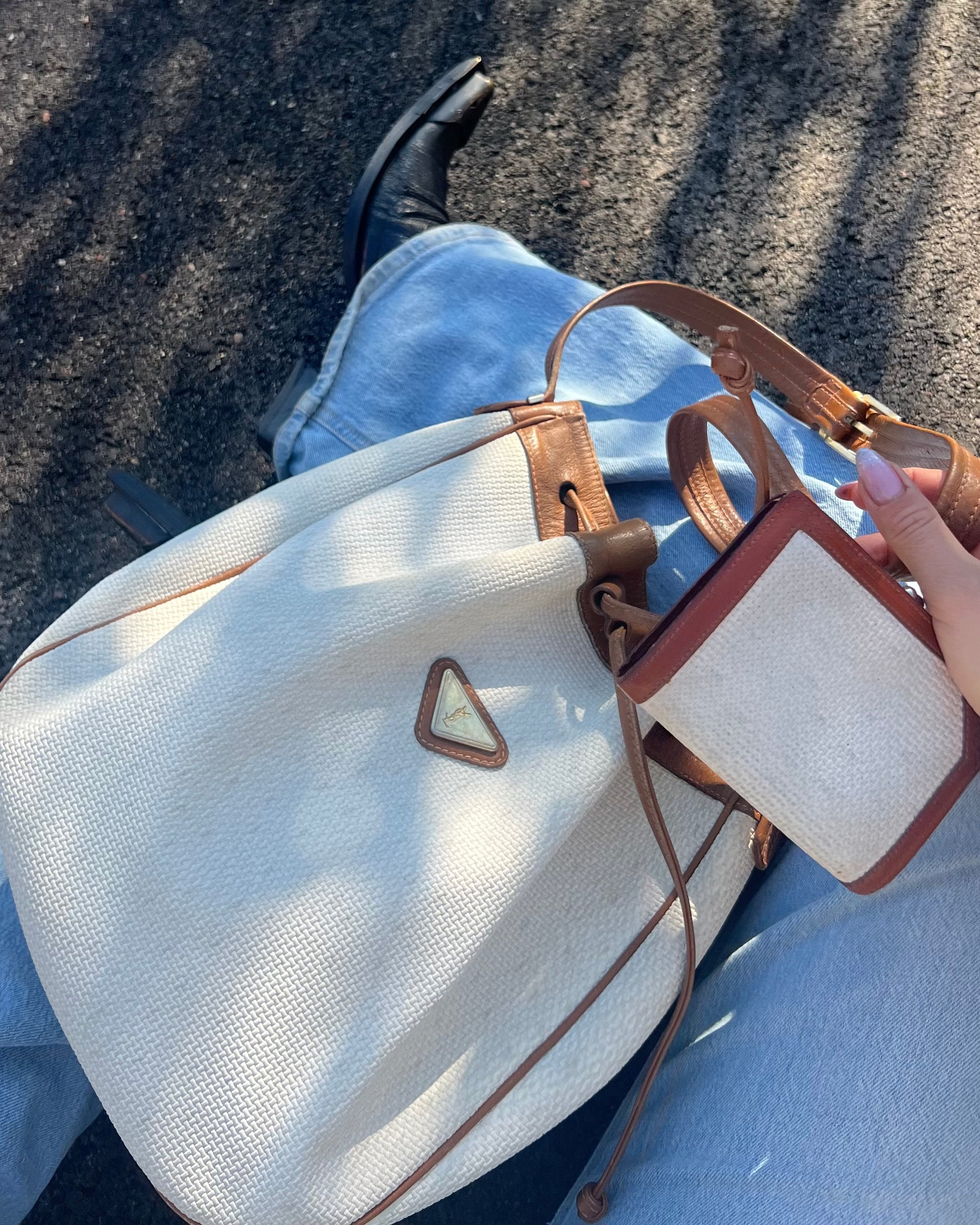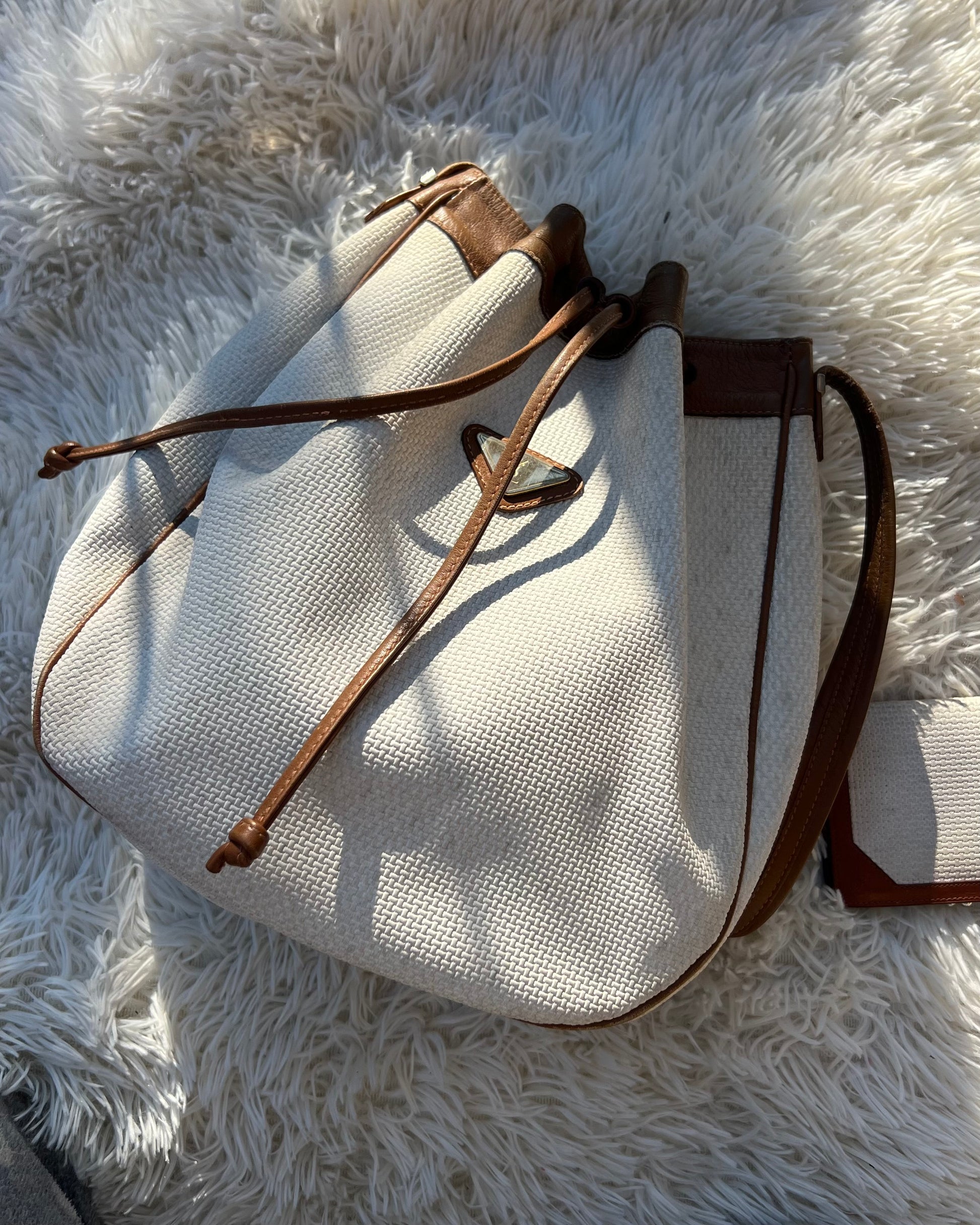 Raffinato e ricercato, questo secchiello Yves Saint Laurent Vintage è realizzato in canvas bianco con eleganti dettagli in pelle marroncino, arricchito da una metalleria dorata che aggiunge un tocco di lusso senza tempo. Il logo frontale applicato su metallo dona un carattere iconico e immediatamente riconoscibile.