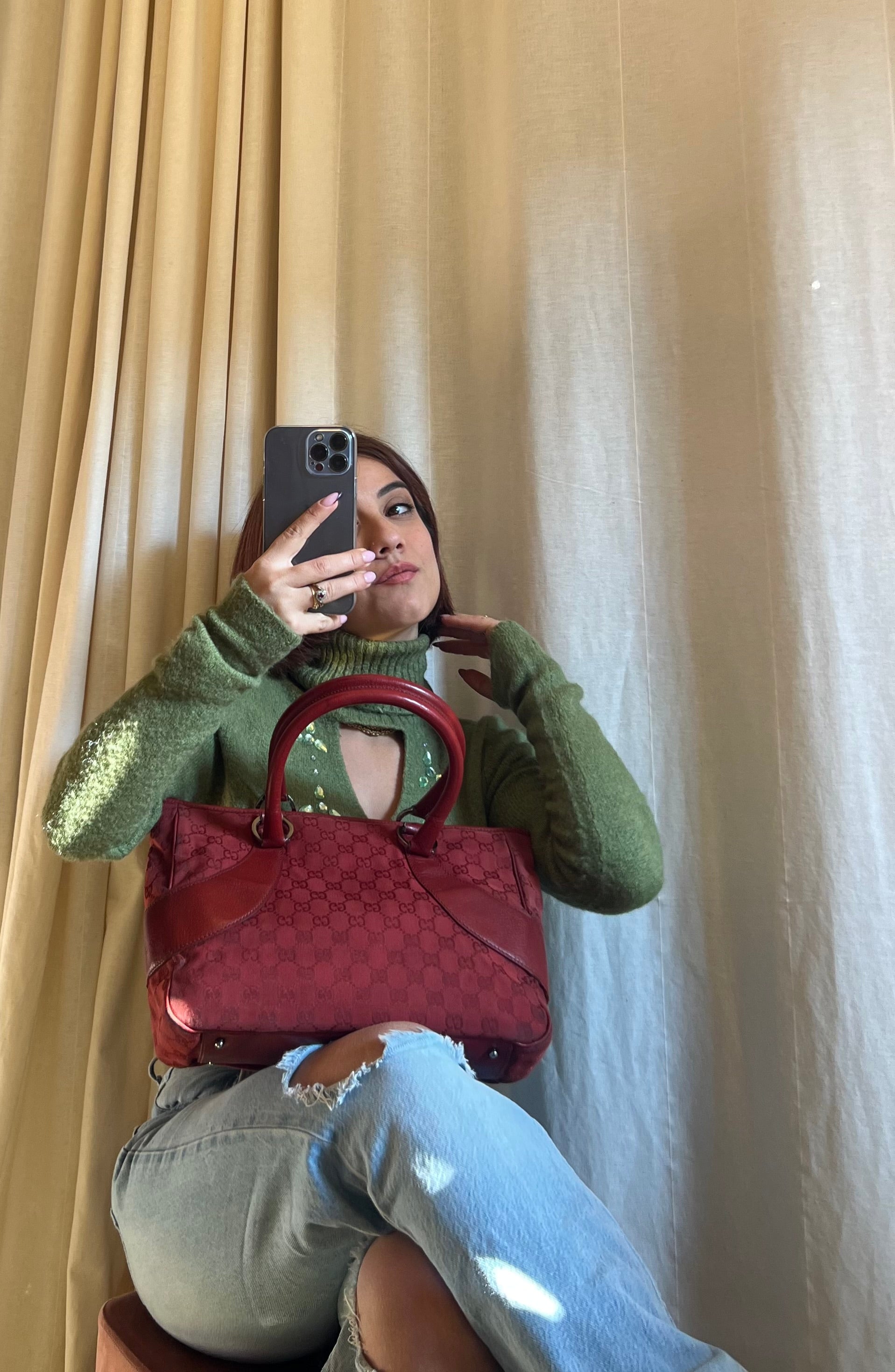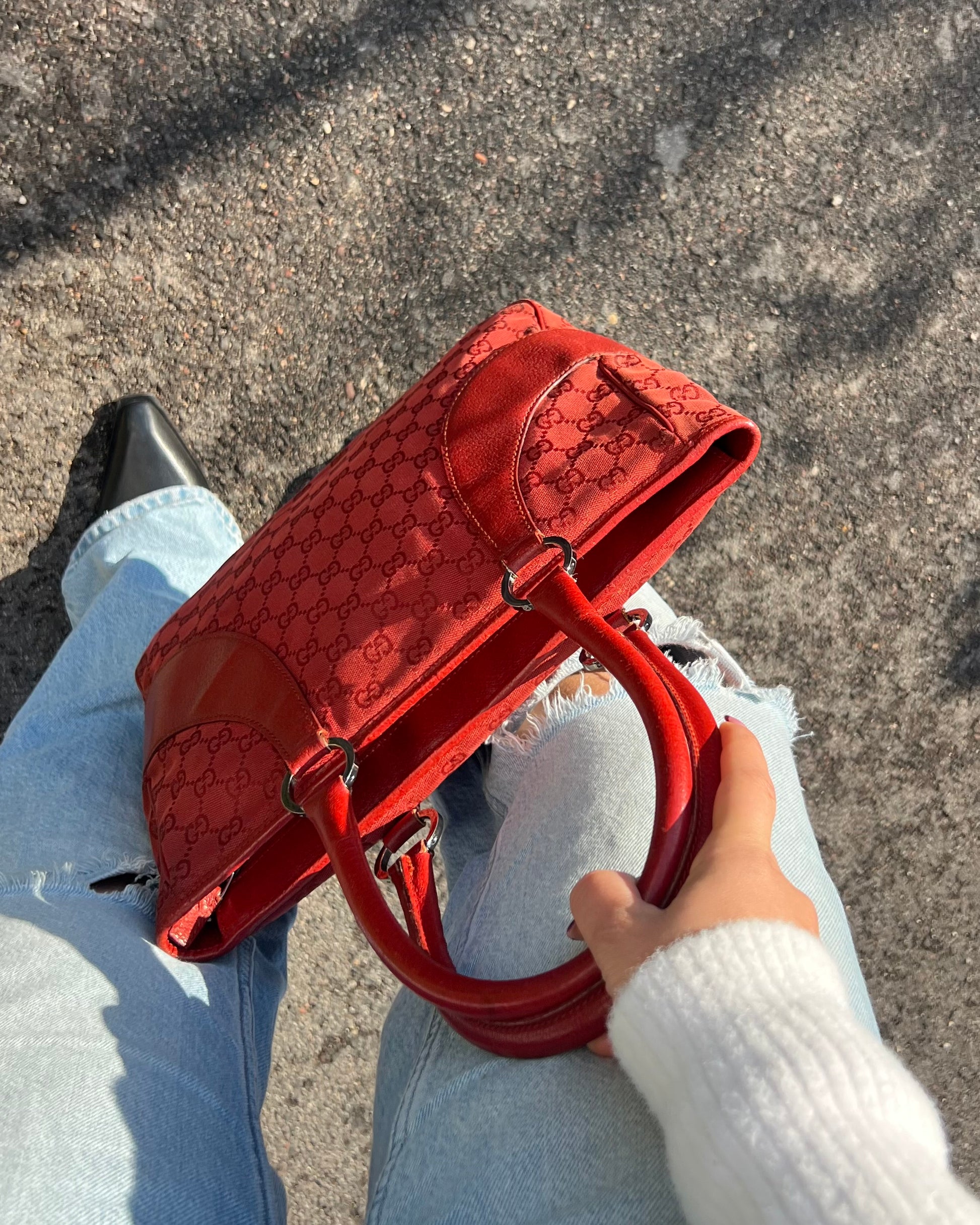 Borsa Gucci in monogram rosso con dettagli in pelle martellata